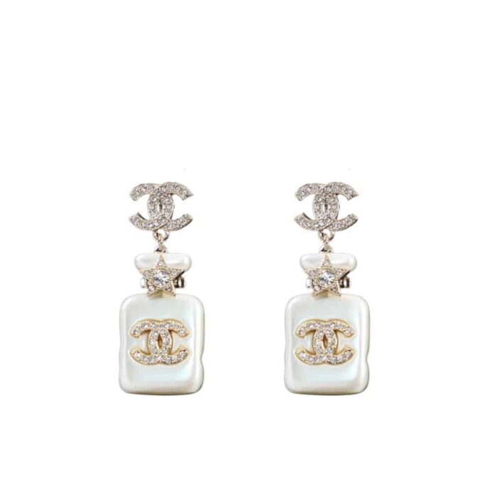 CHANEL PEARL RESIN CRYSTAL CC PERFUME BOTTLE DROP EARRINGS