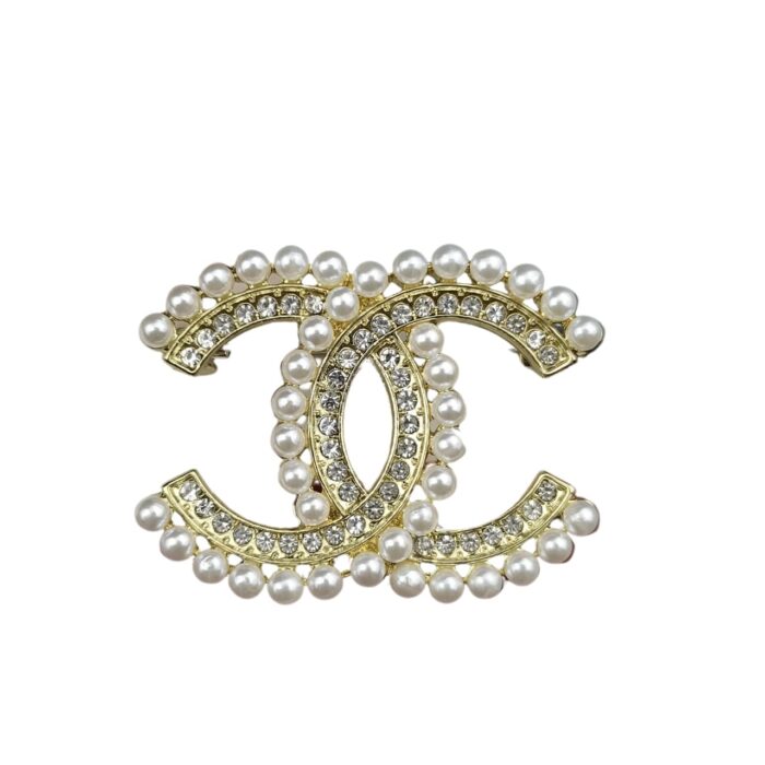 CHANEL CC BROOCH GOLD WITH PEARLS IN THE MIDDLE