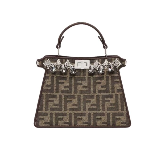FENDI ORIGAMI MEDIUM FF JACQUARD FABRIC BAG BROWN 27CM 8BH414AFPMF1GL7