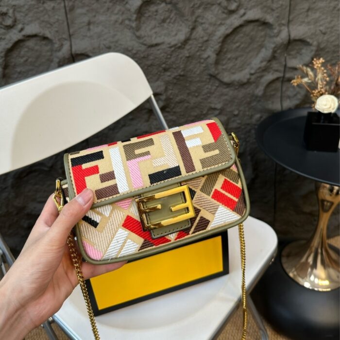 FENDI BAGUETTE FF EMBROIDERED SHOULDER BAG MULTICOLOR 26CM