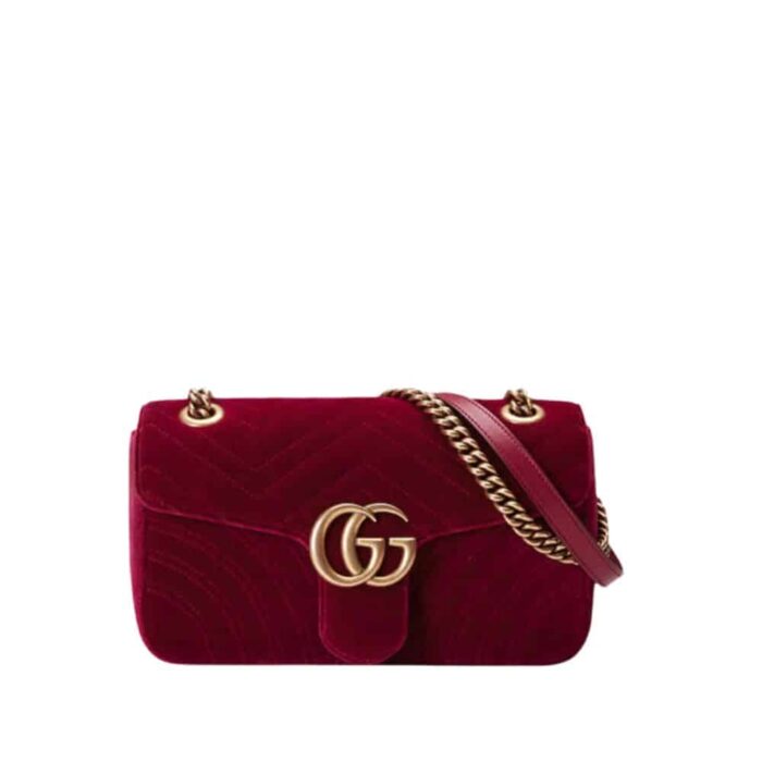 GUCCI GG MARMONT SHOULDER BAG VELVET LEATHER RED 20CM 443497K4D2T 6433