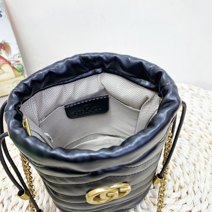 GUCCI GG MARMONT MATELASSΓ CHEVRON MINI BUCKET BAG BLACK 15CM β575163 DTDRT 1000