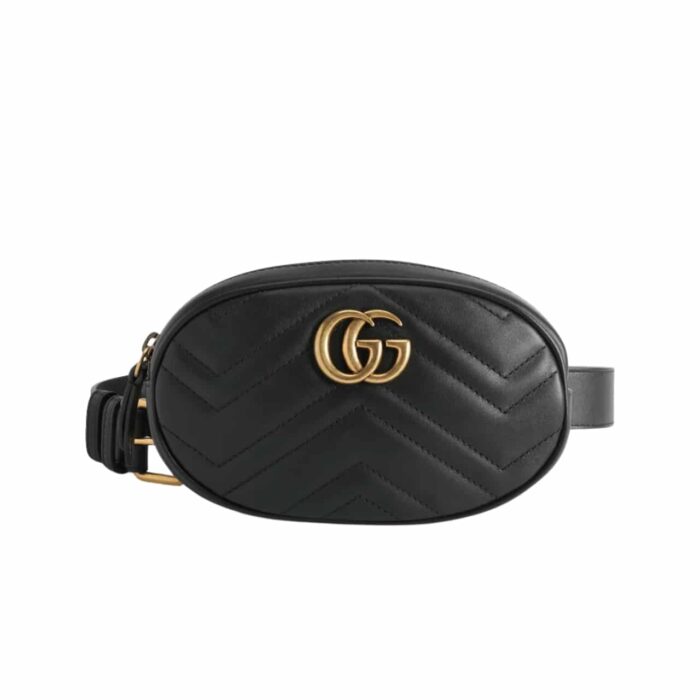 GUCCI GG MARMONT BELT BAG MATELASSE BLACK 18CM