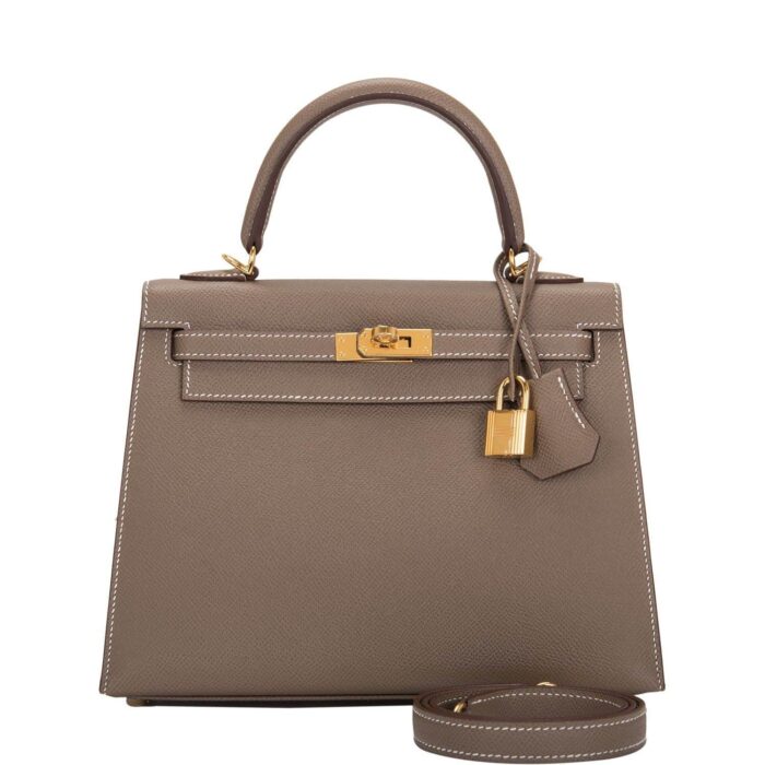 HERMES KELLY EPSOM CK18 ETOUPE GOLD HARDWARE 25CM