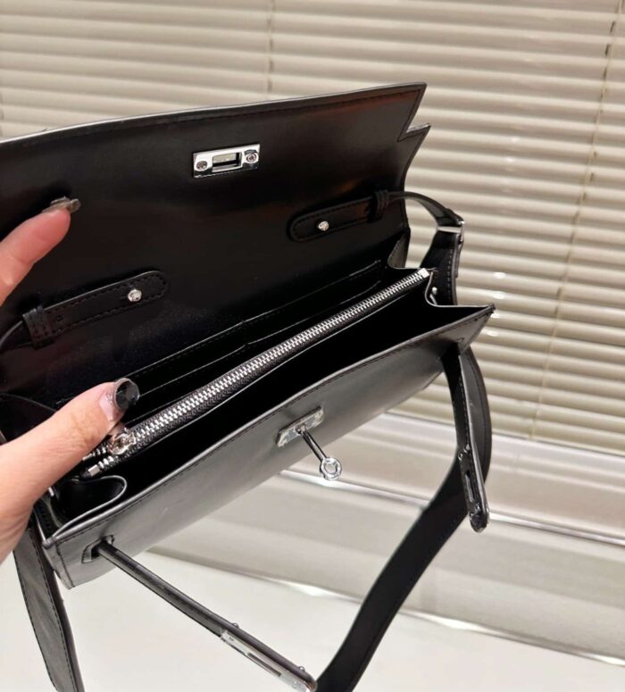 HERMES MINI KELLY POCHETTE GOLD TONED HARDWARE BLACK 22CM