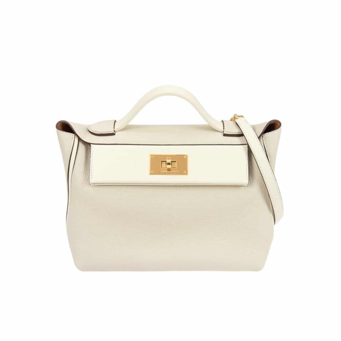 HERMΓS KELLY 24/24 GOLD HARDWARE EVERCOLOR BLANC 21CM