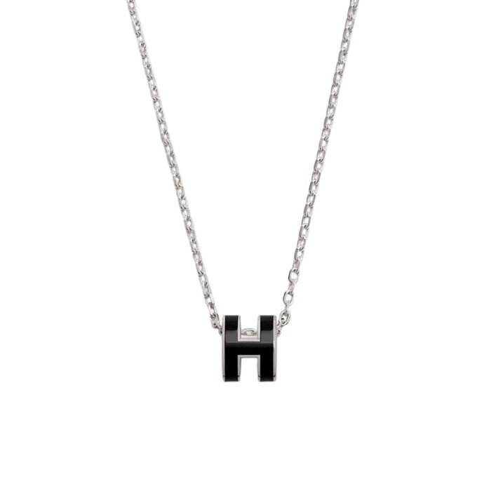 HERMES MINI POP H PENDANT NECKLACE BLACK AND SILVER