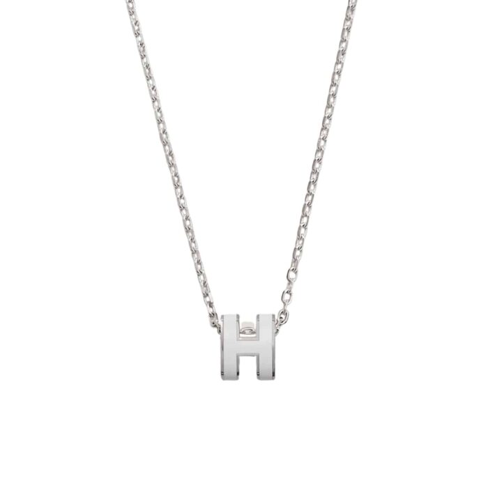 HERMES MINI POP H PENDANT NECKLACE WHITE AND SILVER