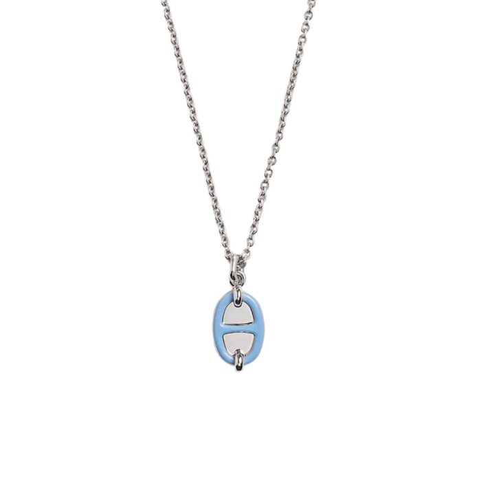 HERMES MINI MAILLON PENDANT SMALL MODEL NECKLACE SILVER TONE WITH BLACK H100053FP03