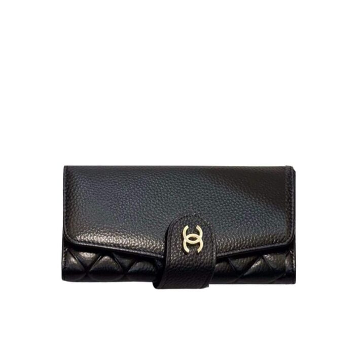 CHANEL CC LOGO LONG FLAP WALLET GOLD BLACK 19CM