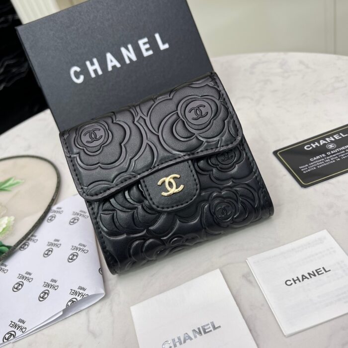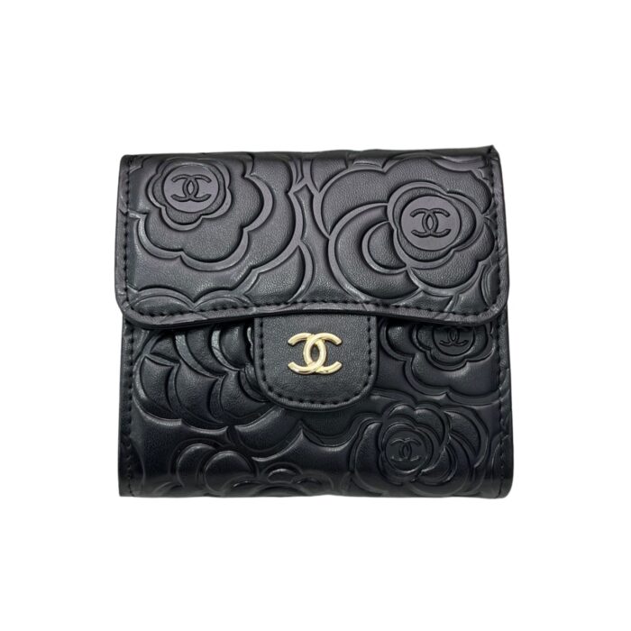 CHANEL SMALL FLORAL WALLET BLACK 11.5CM