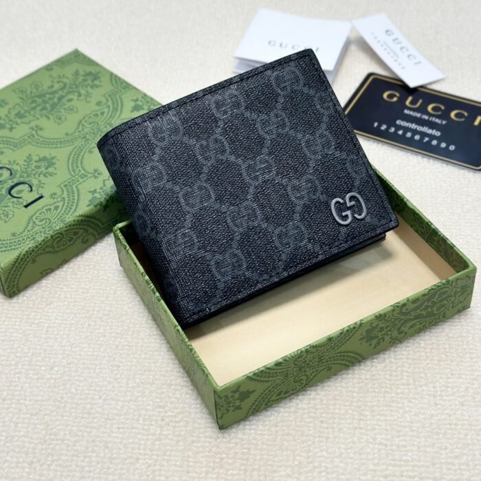 GUCCI INTERIOR BI FOLD WALLET BLACK AND GREY 11CM