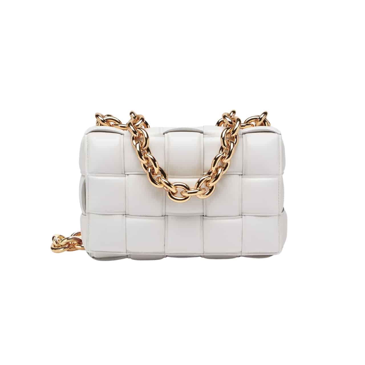 BOTTEGA VENETA CHAIN CASSETTE CROSSBODY BAG IN WHITE 26CM 631421VBWZ09143