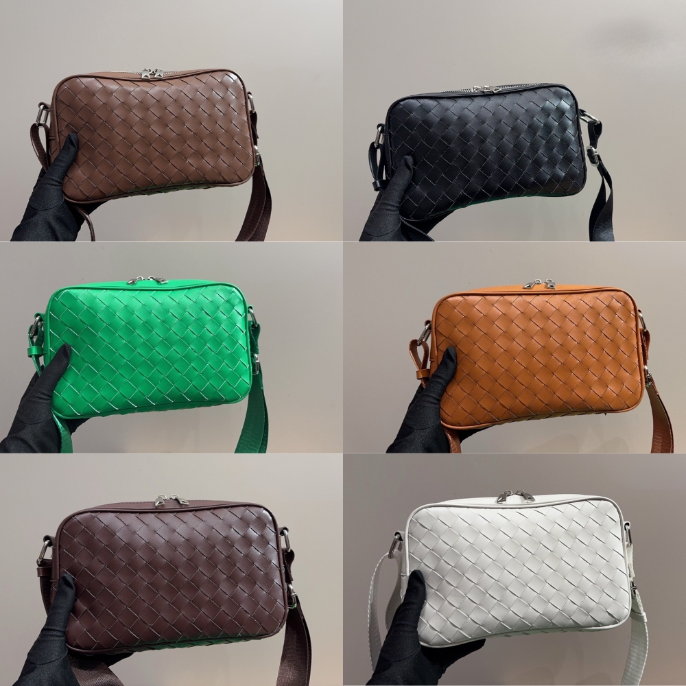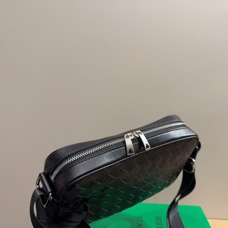 Cross-body bag in Intrecciato leather with detachable strap and metal D-ring.