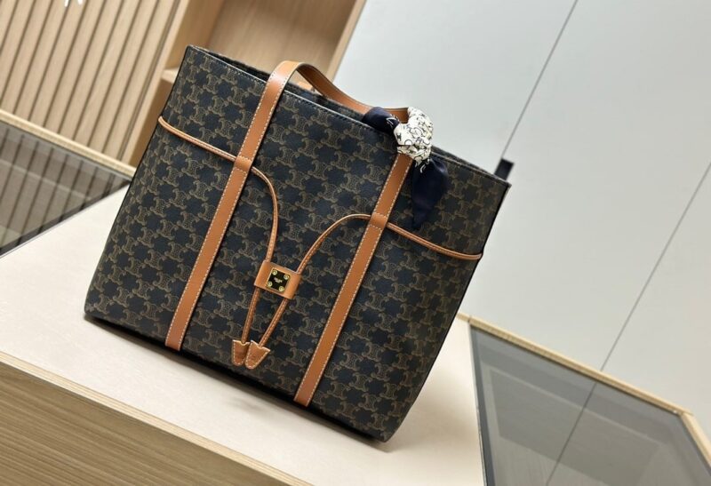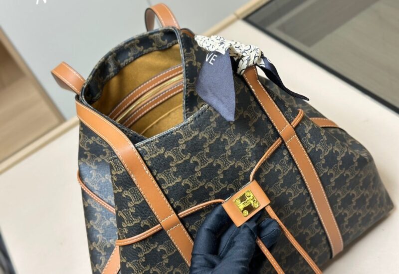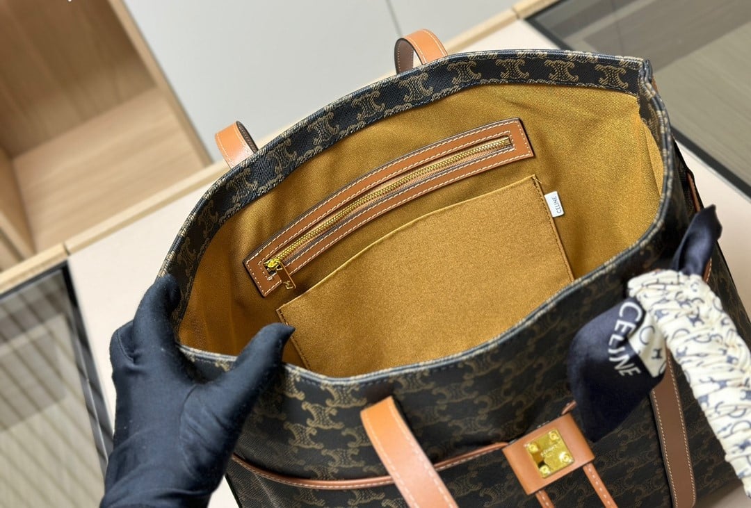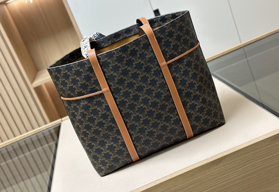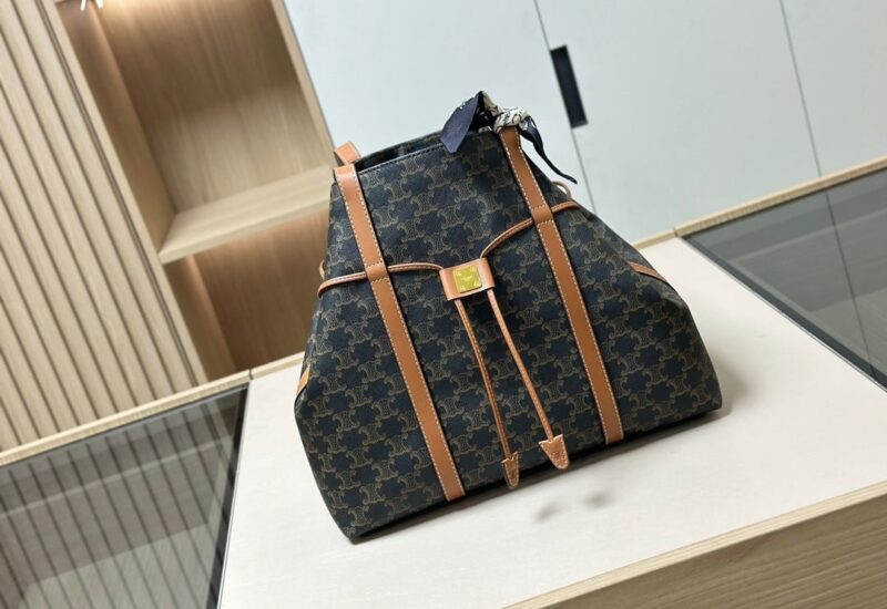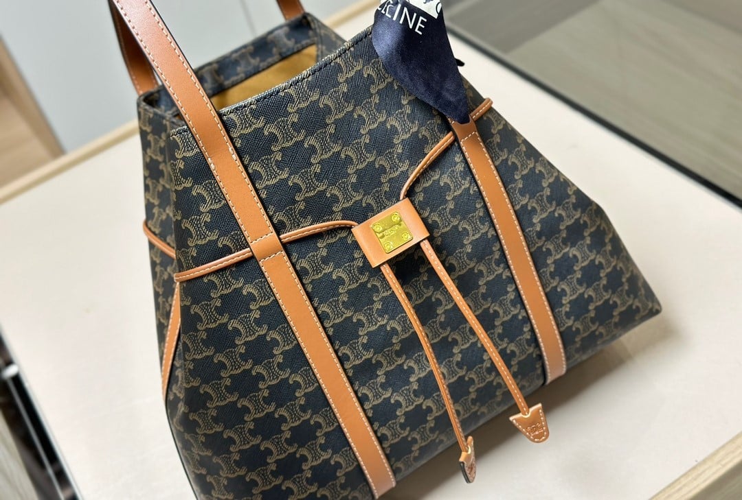 Celine //Cabas Drawstring In Triomphe Canvas And Calfskin //Black //36cm