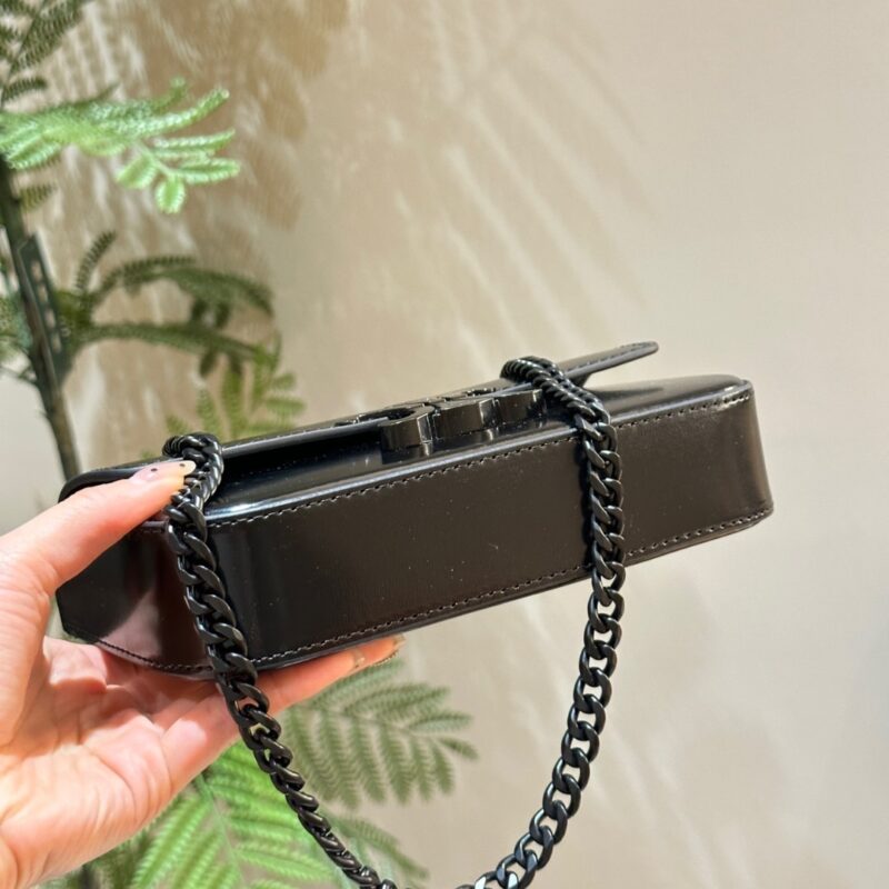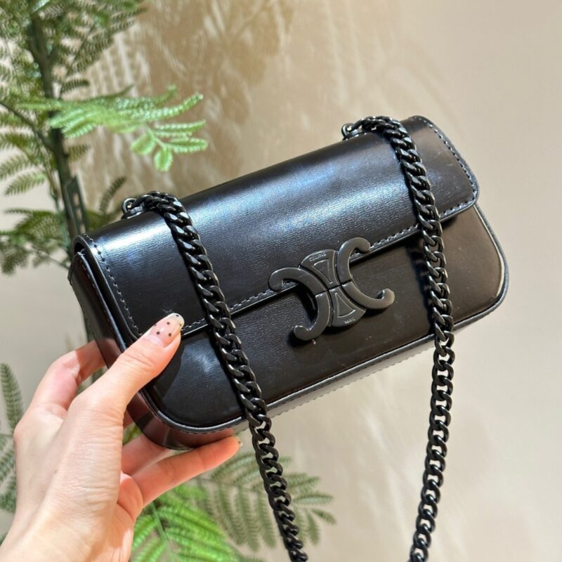 CELINE CHAIN TRIOMPHE IN SHINY SHOULDER BAG BLACK BLACK 20CM