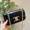 Celine Chain Triomphe In Shiny Shoulder Bag Silver Black 20Cm 115203Bf4 38Si