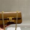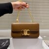 Celine Chain Triomphe In Shiny Calfskin Shoulder Bag Silver Golden Brown 20cm