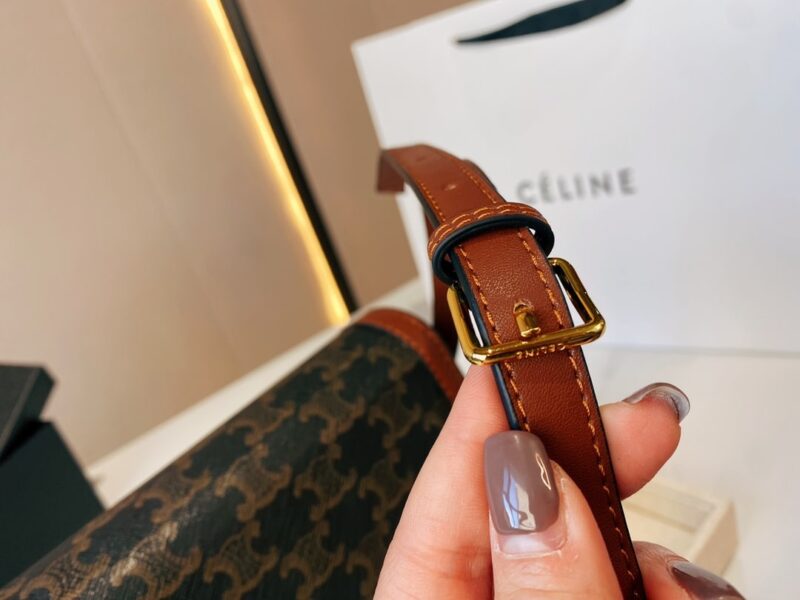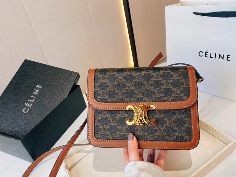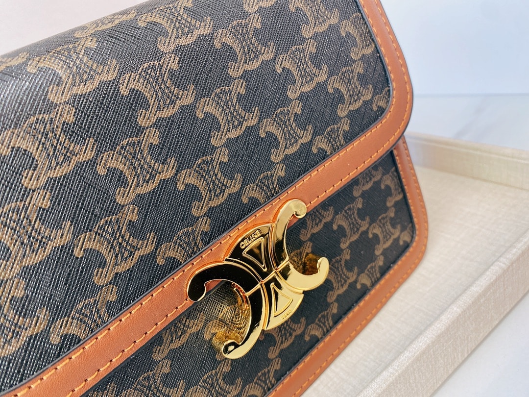 Celine Classique Triomphe Bag In Triomphe Canvas And Calfskin Tan 22cm