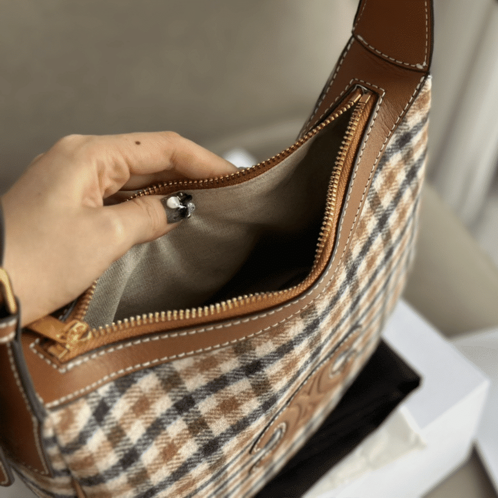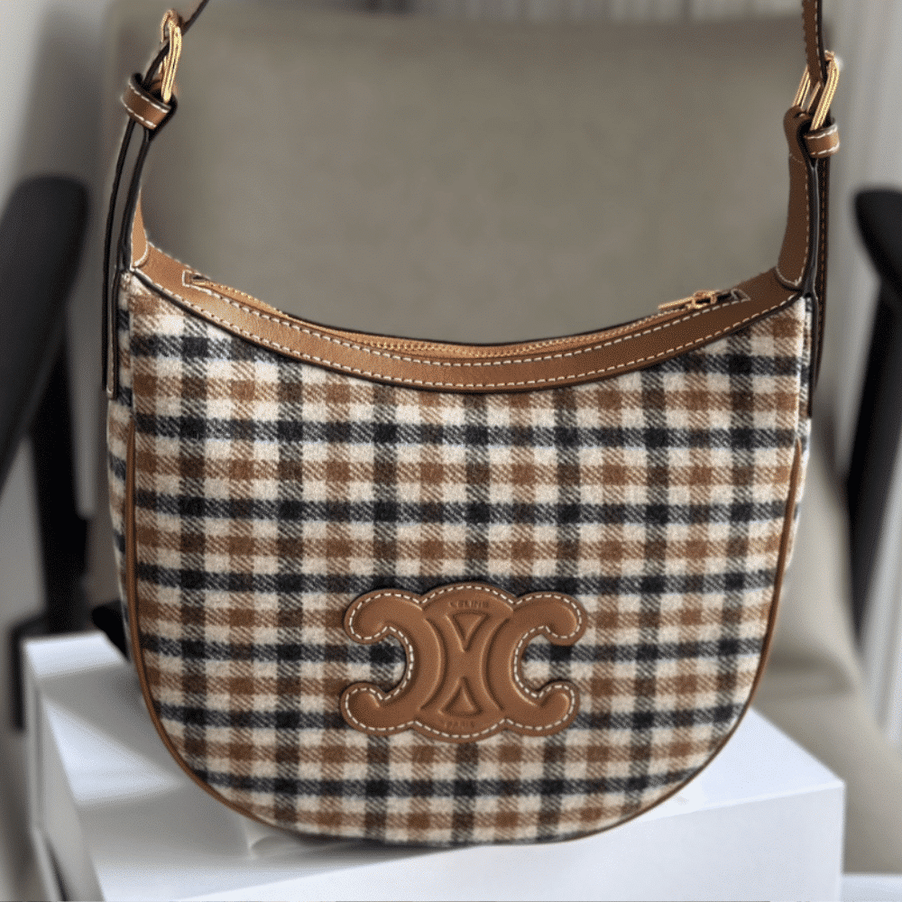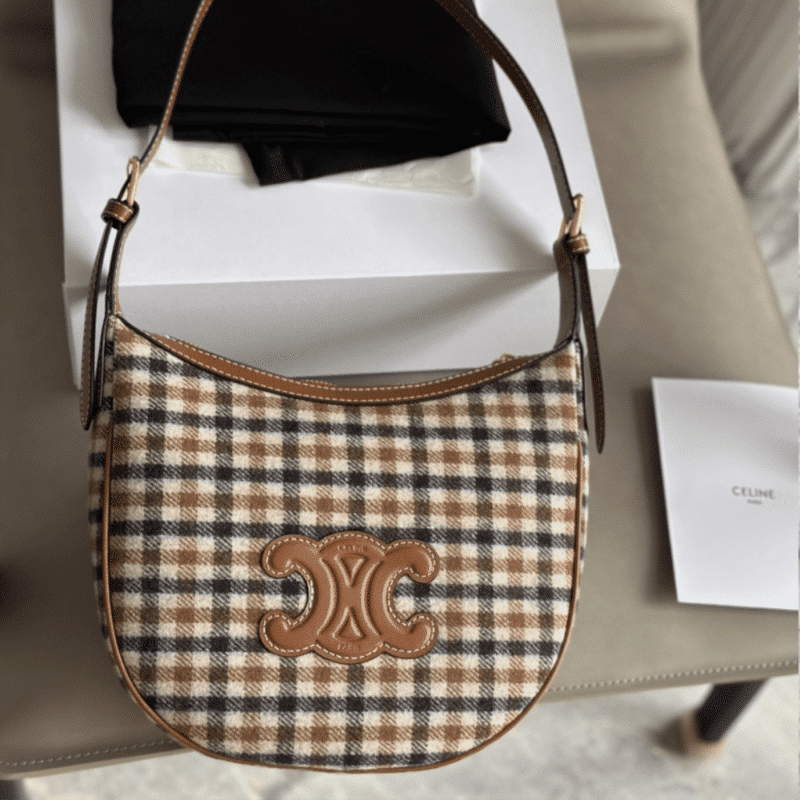 Celine Heloise Cuir Triomphe Bag Tartan Textile and Calfskin Small 24 cm / 9.5 inches