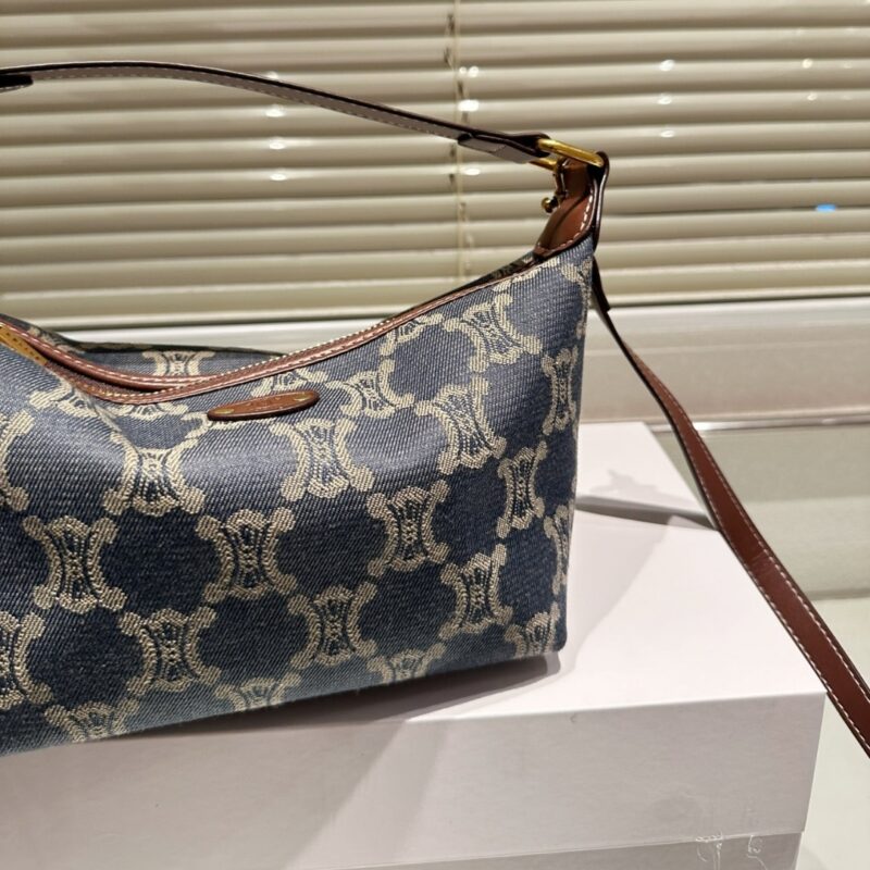 Celine//Macadam Vintage Denim Shoulder Bag//Blue//19cm