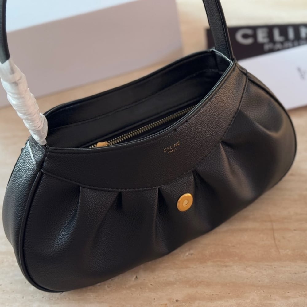 Celine Medium Polly Bag In Supple Calfskin Black 115633FDU 38NO/ 31 cm / 12.2 inches