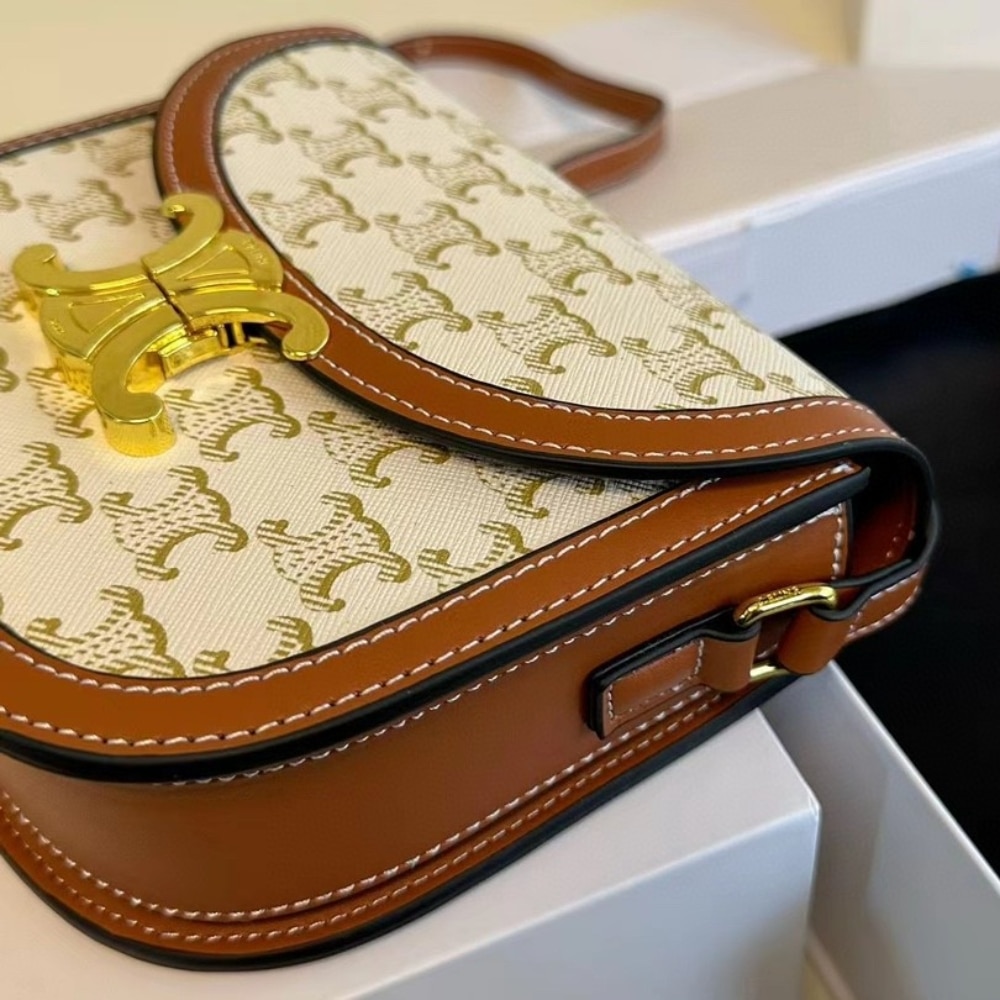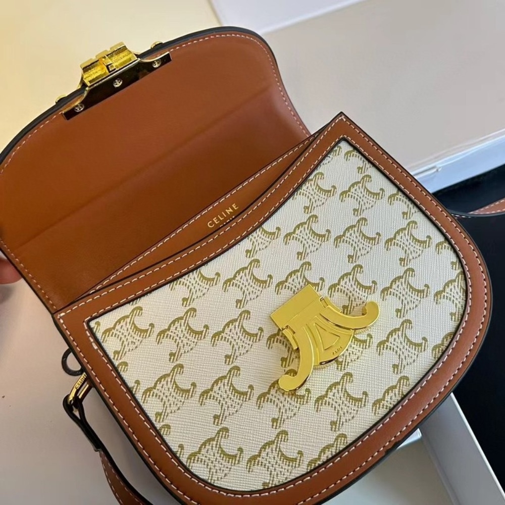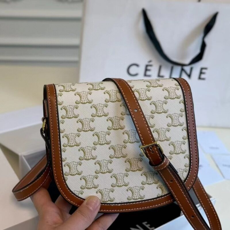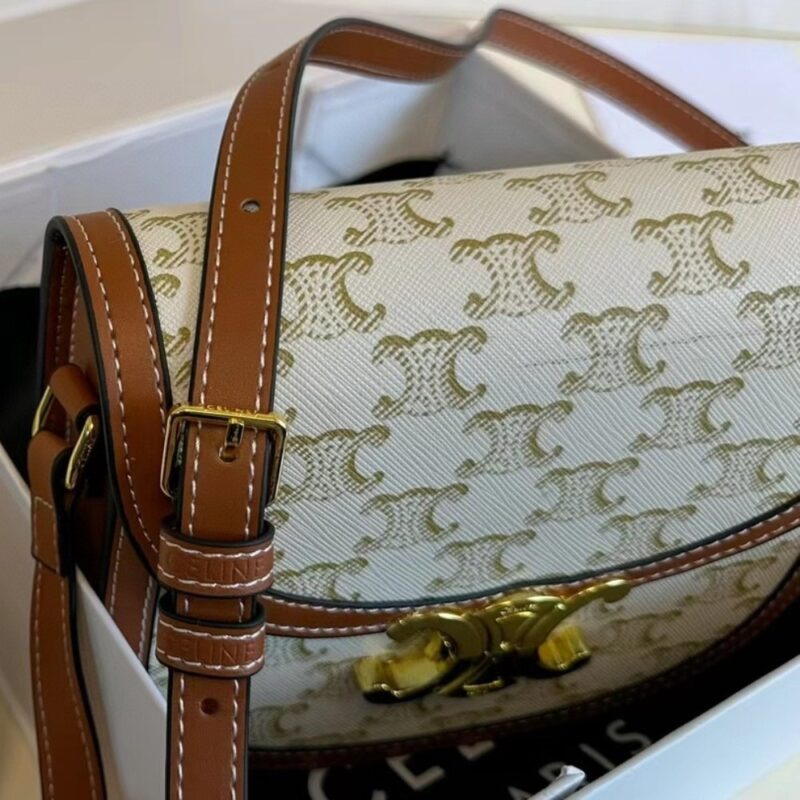 Celine Mini Besace in Triomphe Canvas And Calfskin White 18cm 196702BZJ 01BC