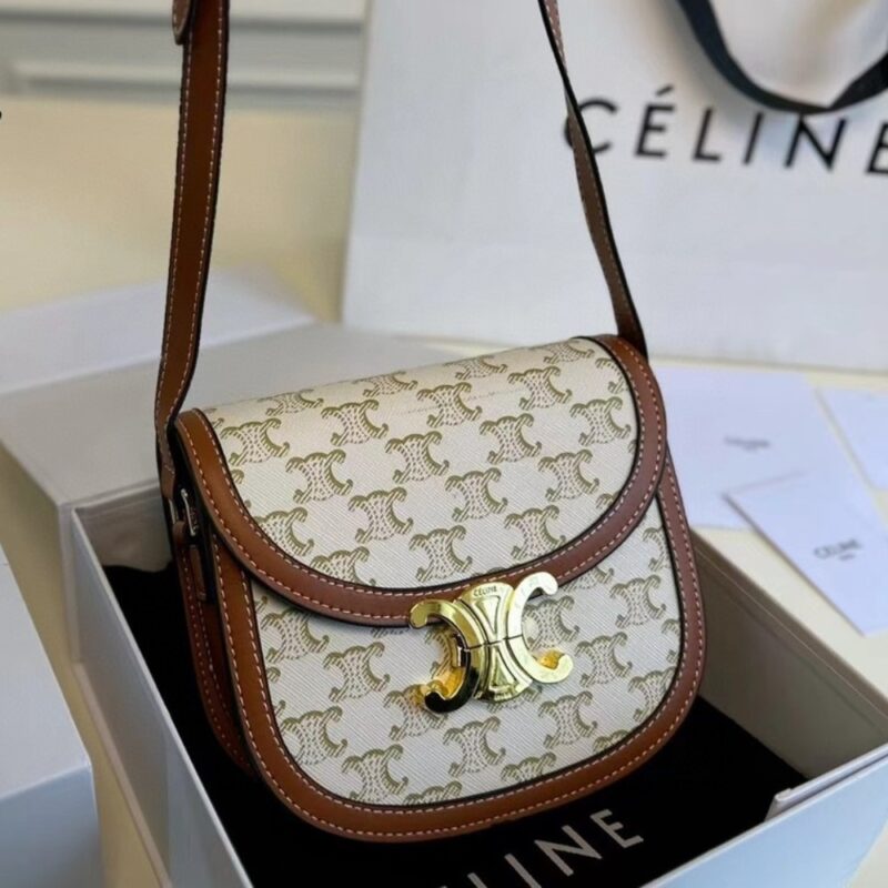 CELINE MINI BESACE IN TRIOMPHE CANVAS AND WHITE 18CM 196702BZJ 01BC