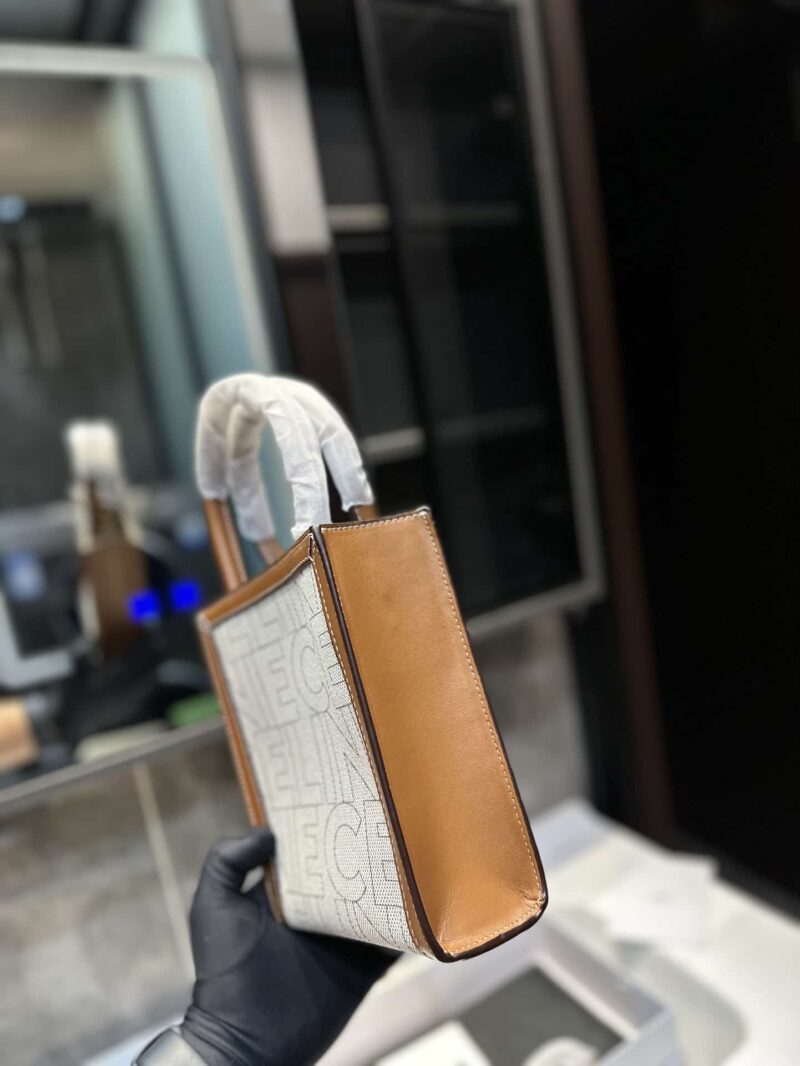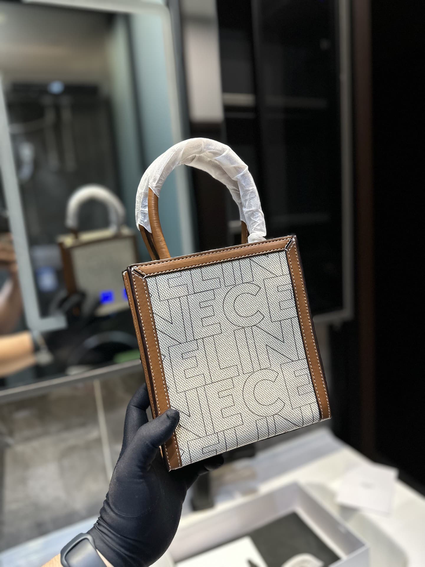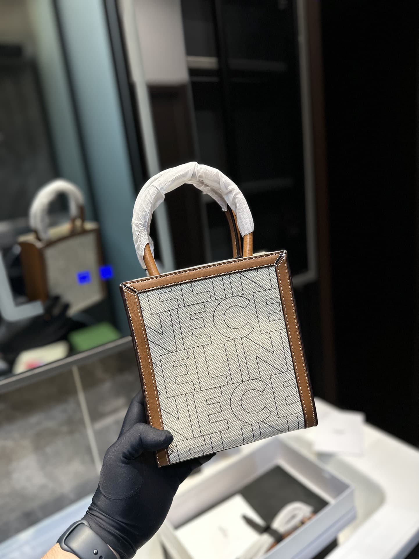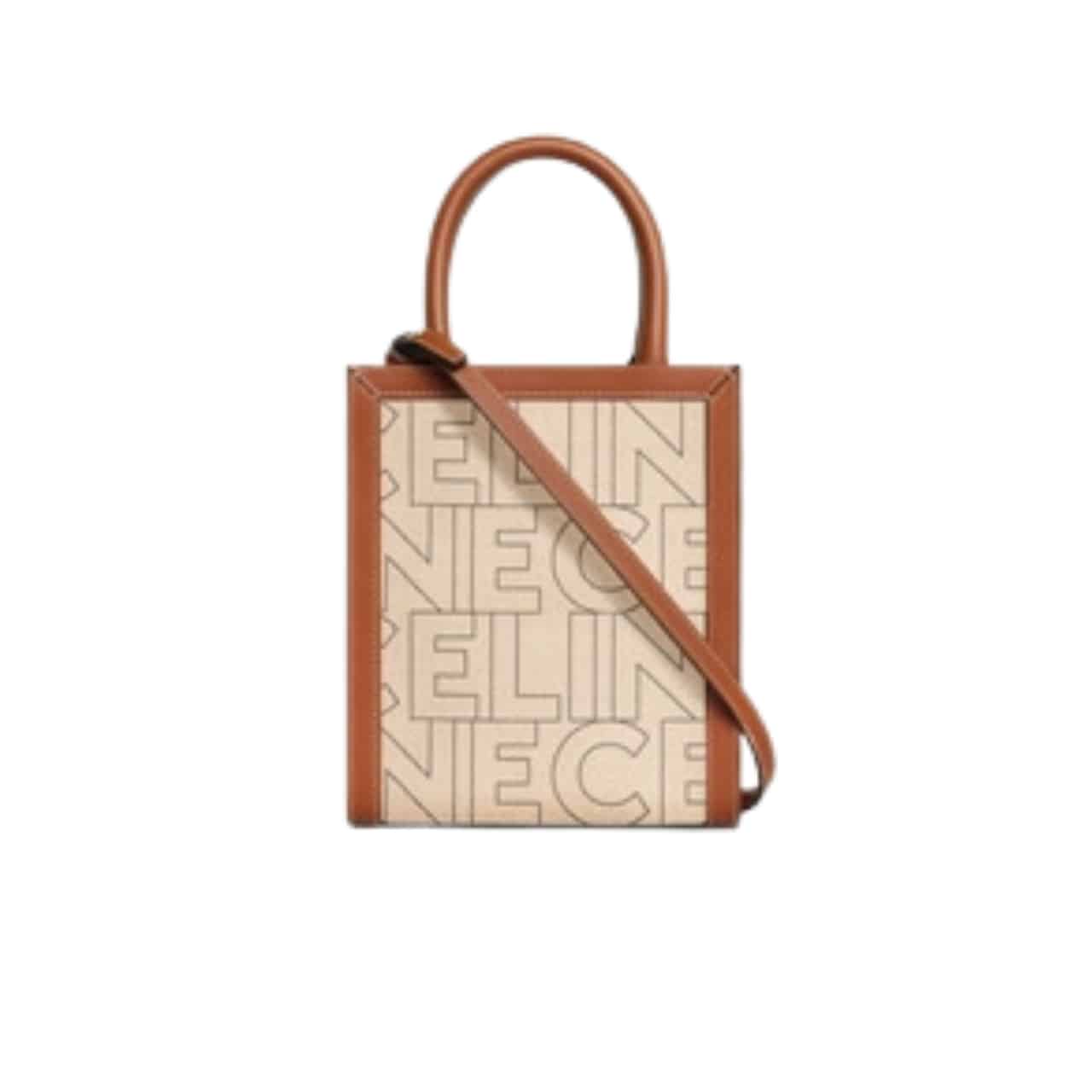 Celine //Mini Vertical Cabas Celine In Textile With Celine All Over Print //Natural Tan //21cm