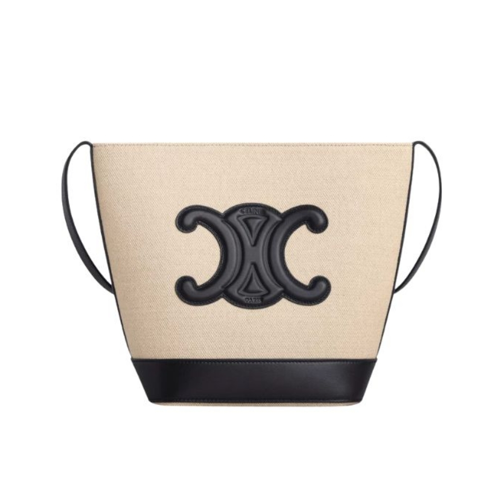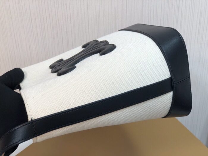 Celine Small Bucket Cuir Triomphe In Textile Vanilla Black 198242DU7 01VK / 30cm / 11.8 inches