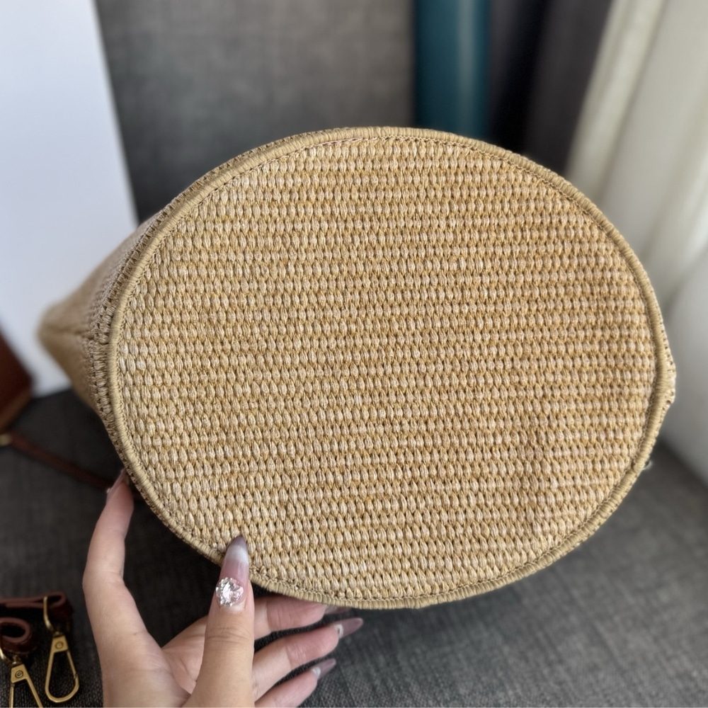 Celine Supple Small Triomphe Classic Panier In Raffia Tan 25cm