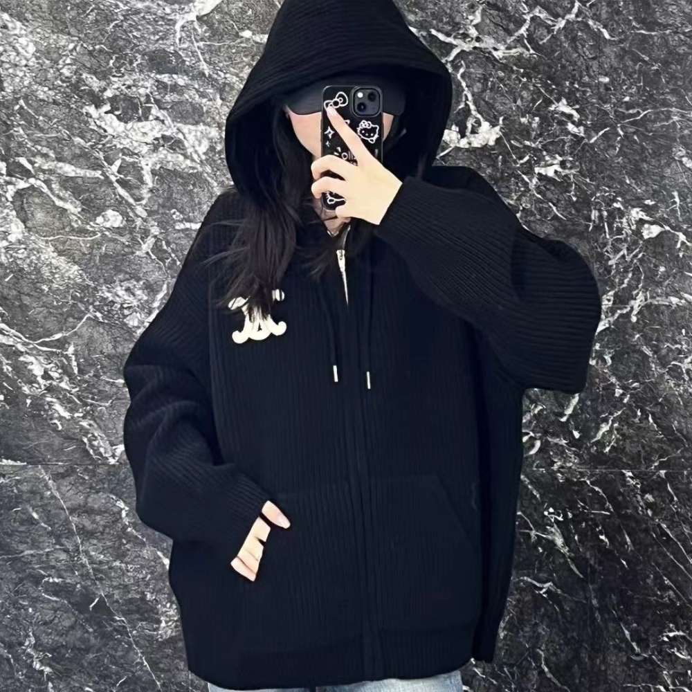 CELINE SWEATSHIRT JACKET WITH MAXI TRIOMPHE LOGO NAVY BLUE