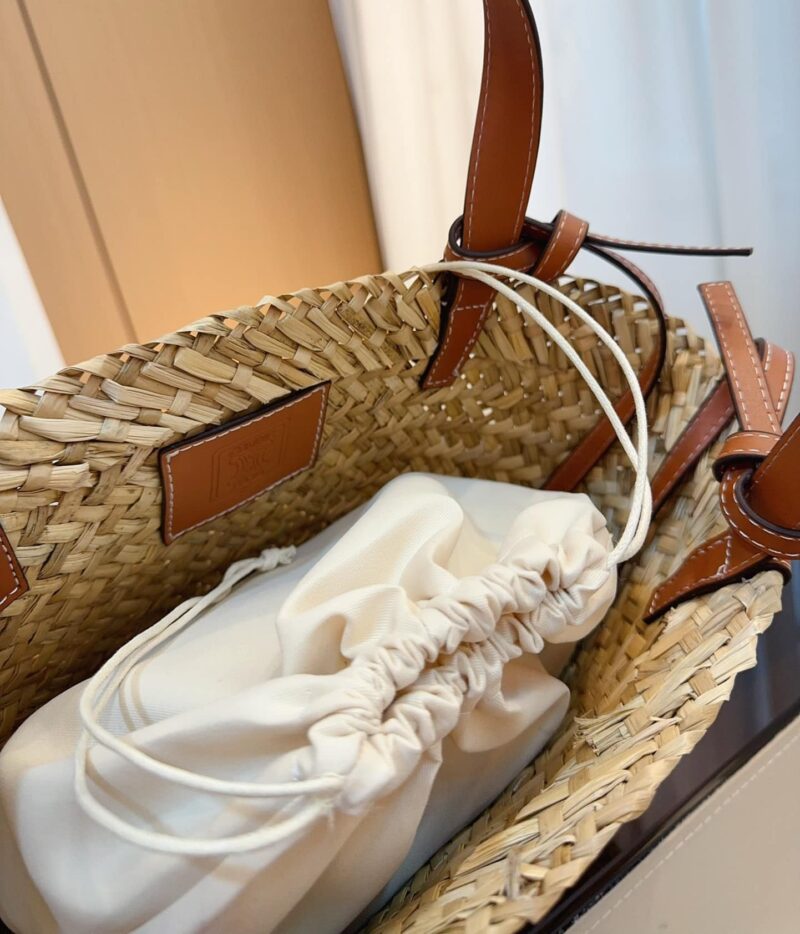 CELINE TRIOMPHE CELINE PANIER IN PALM LEAVES HEART LOGO TAN 20CM