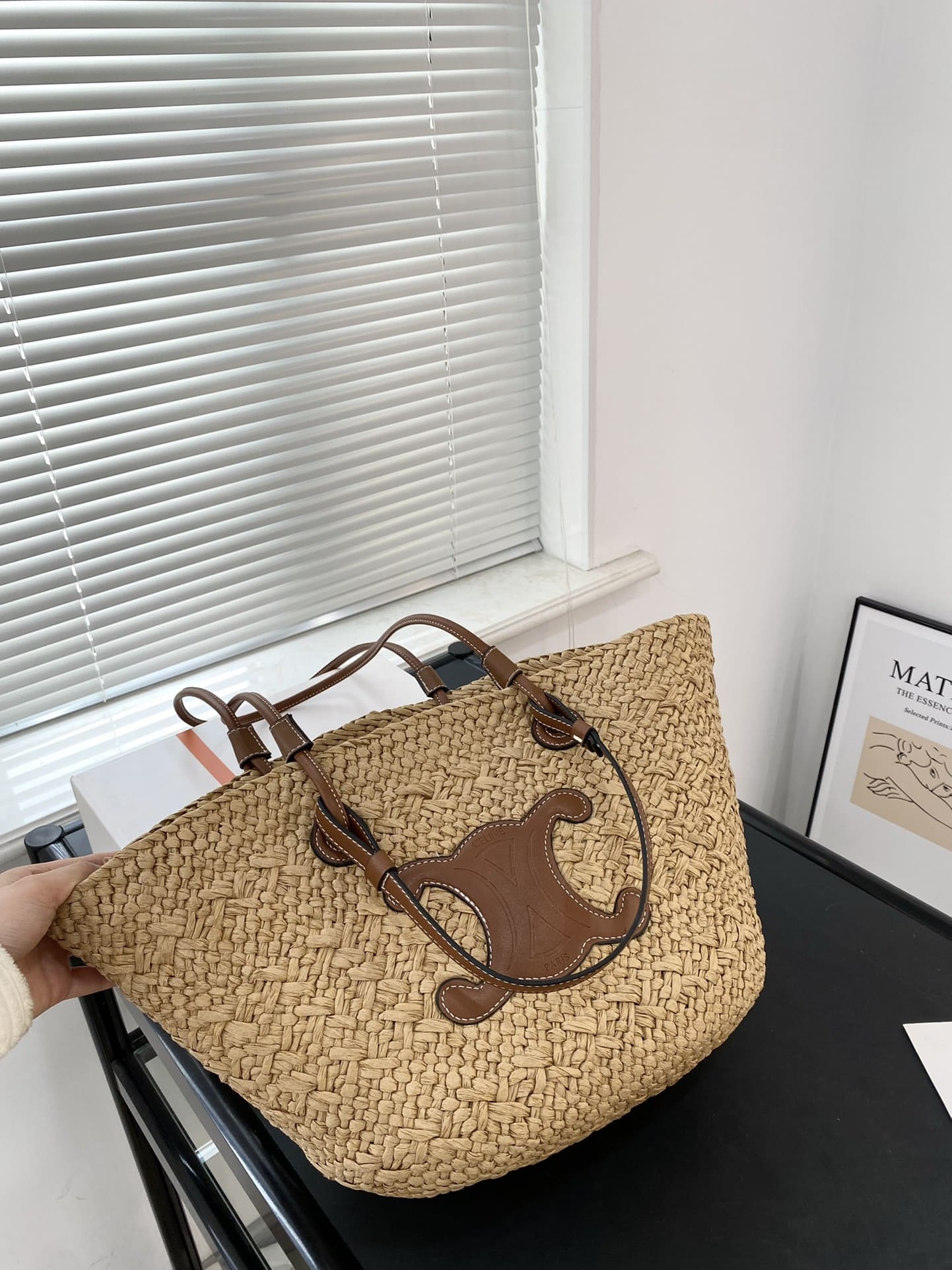 Celine Triomphe Panier In Raffia And Calfskin Tan 31cm / 12.2in