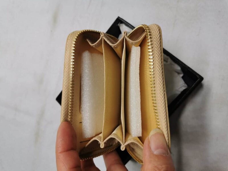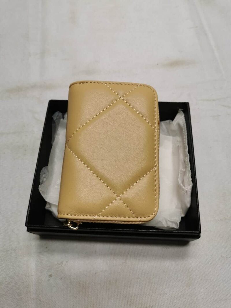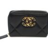 Chanel 19 Card Holder With Zipper Leather Beige Wallet