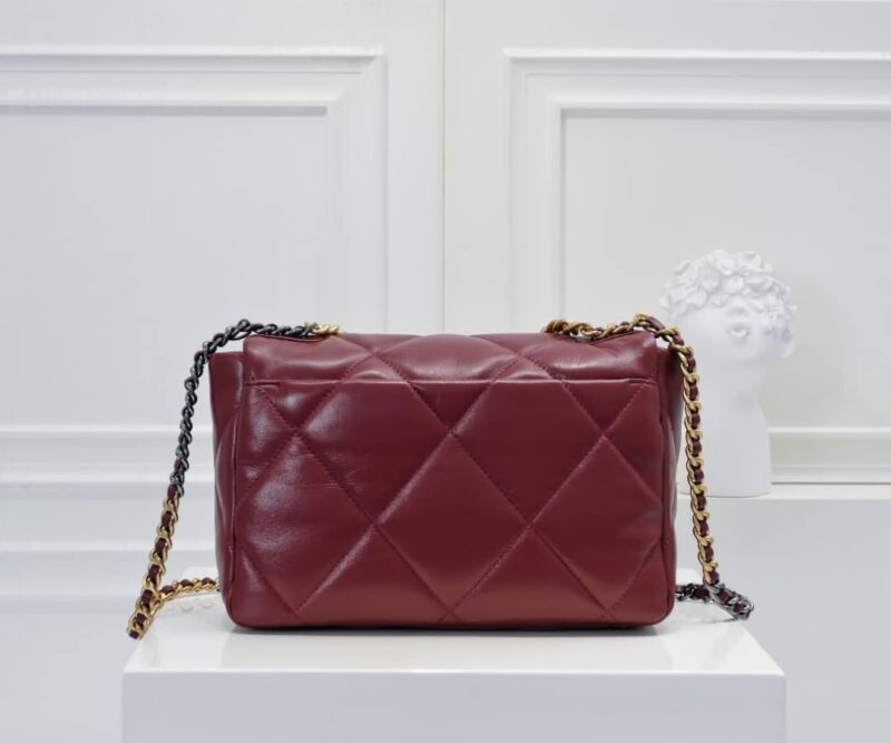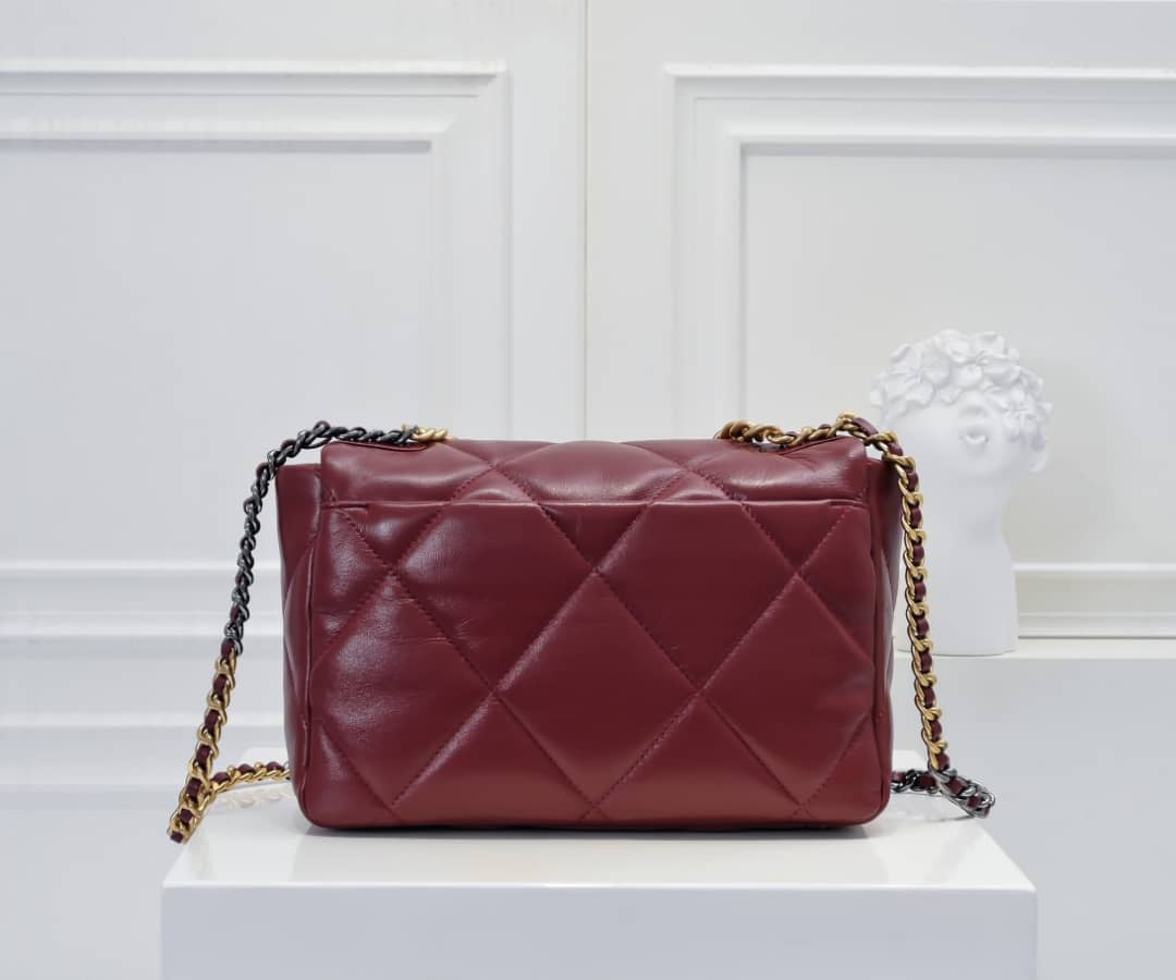 Chanel 19 Flap Bag Shiny Crumpled Calfskin Burgundy 22 cm / 8.6 inches