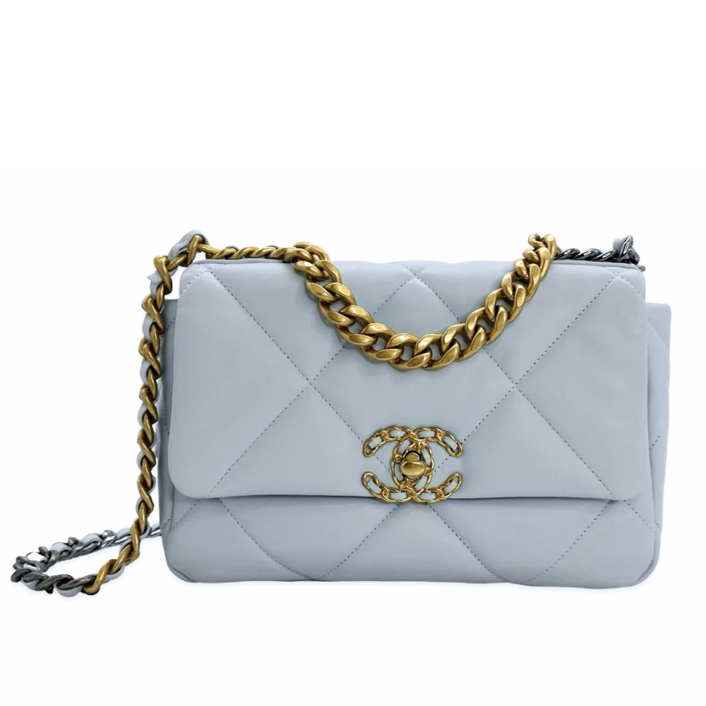 The Chanel 19 Flap Bag in light blue is a modern icon that blends the Maison’s heritage with a relaxed, slouchy aesthetic. Designed for multiple carrying options, it can be held by the top handle, worn on the shoulder, or styled as a crossbody for a contemporary look.