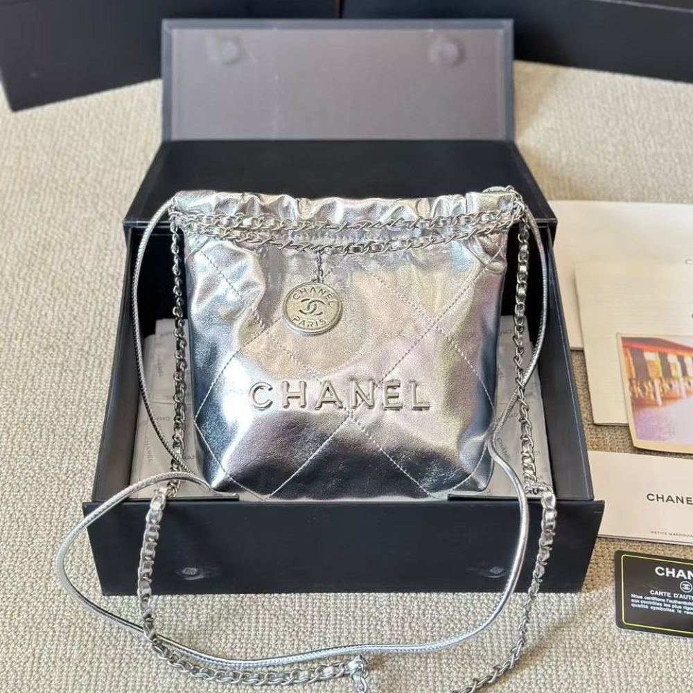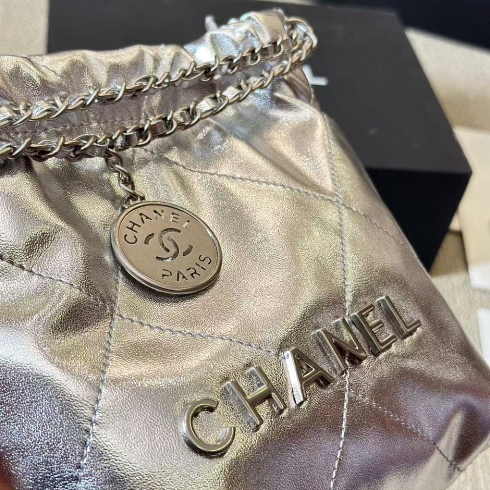 Replica 1:1 – Chanel 22 Mini Handbag Shiny And Gold Tone Metal Silver 20cm