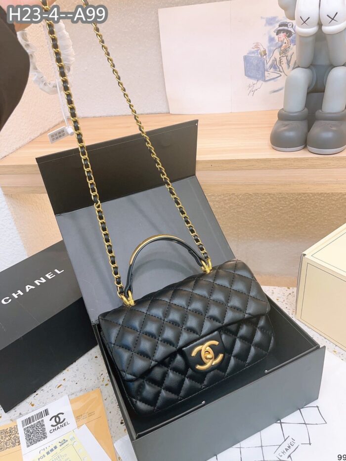 Chanel 22B Flap Bag With Gold Hardware Top Handle / Black 21Cm