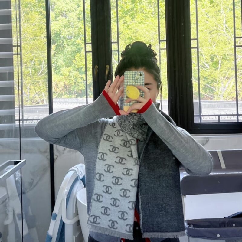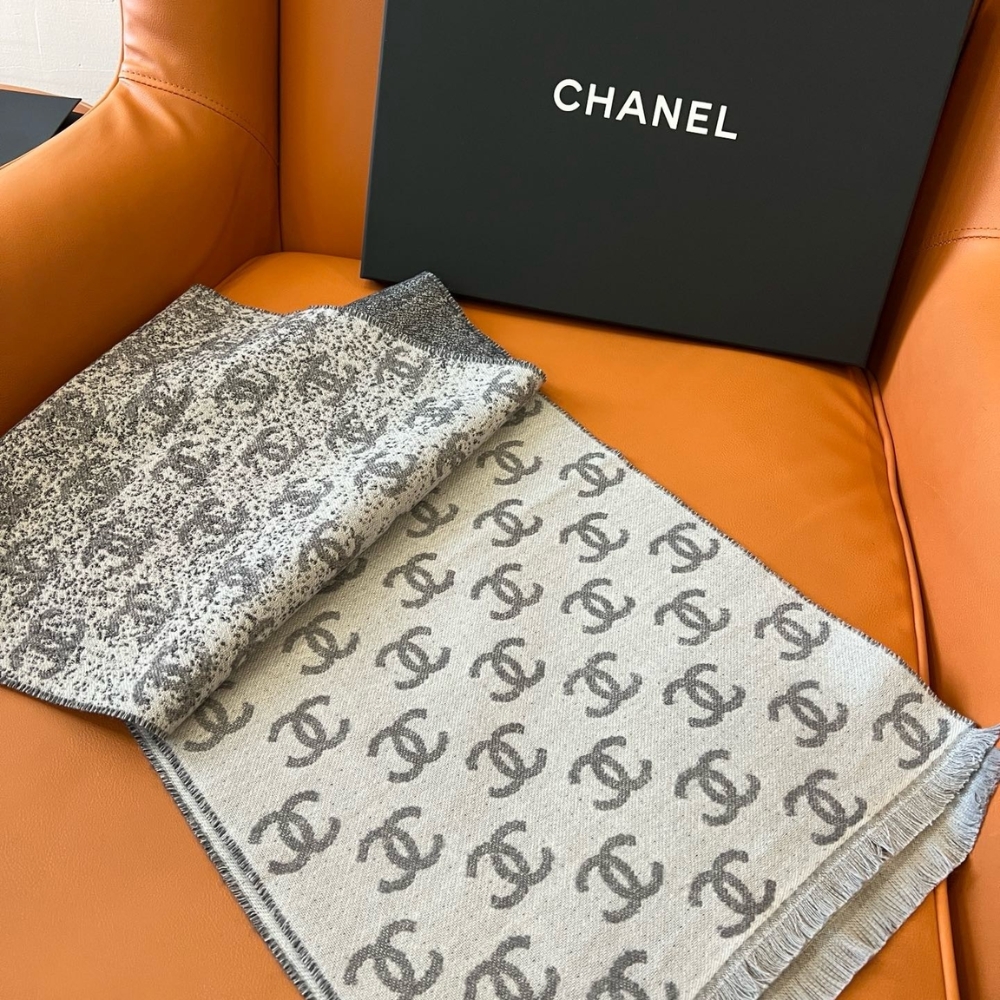Chanel 24B Full CC Scarf Grey And Black 180Cm
