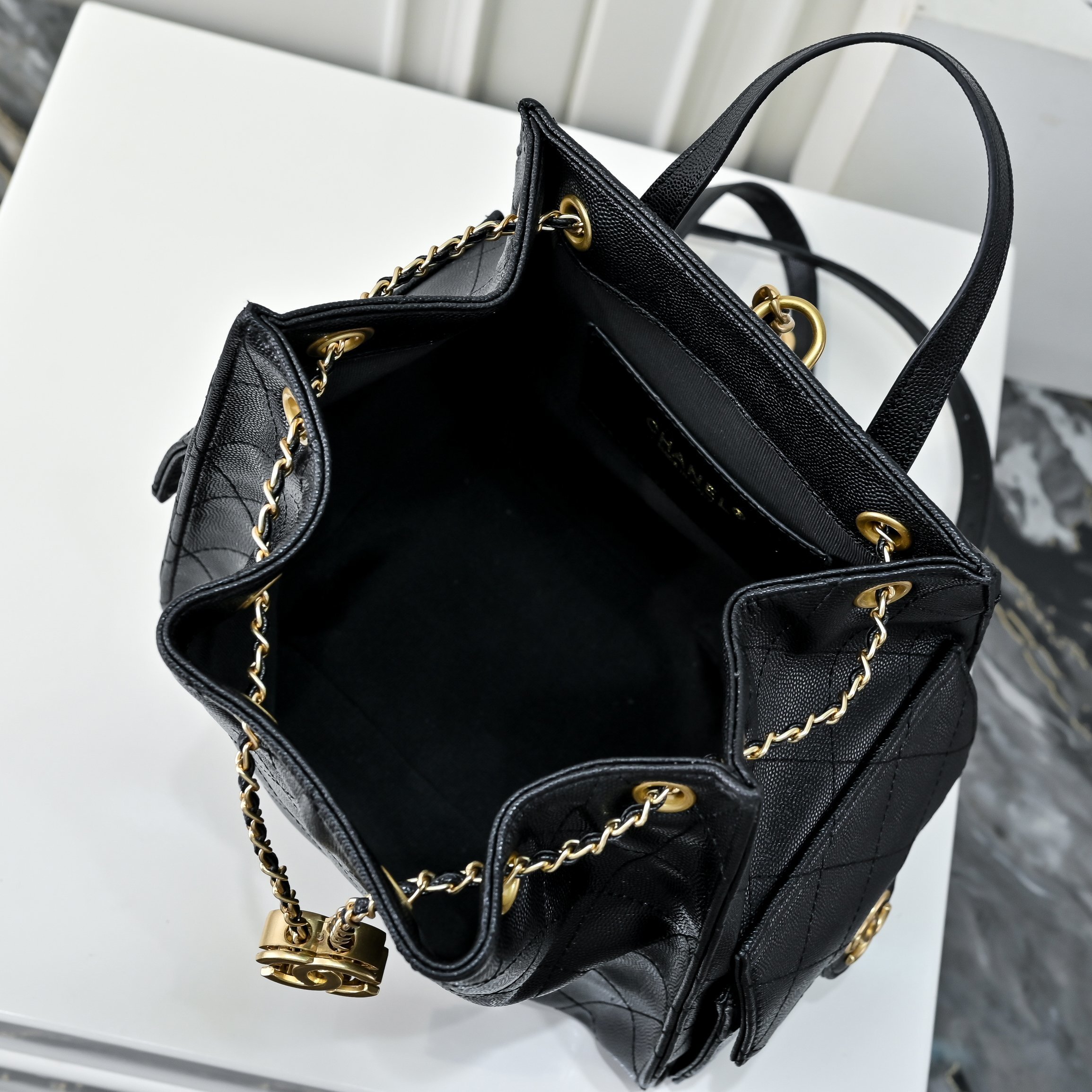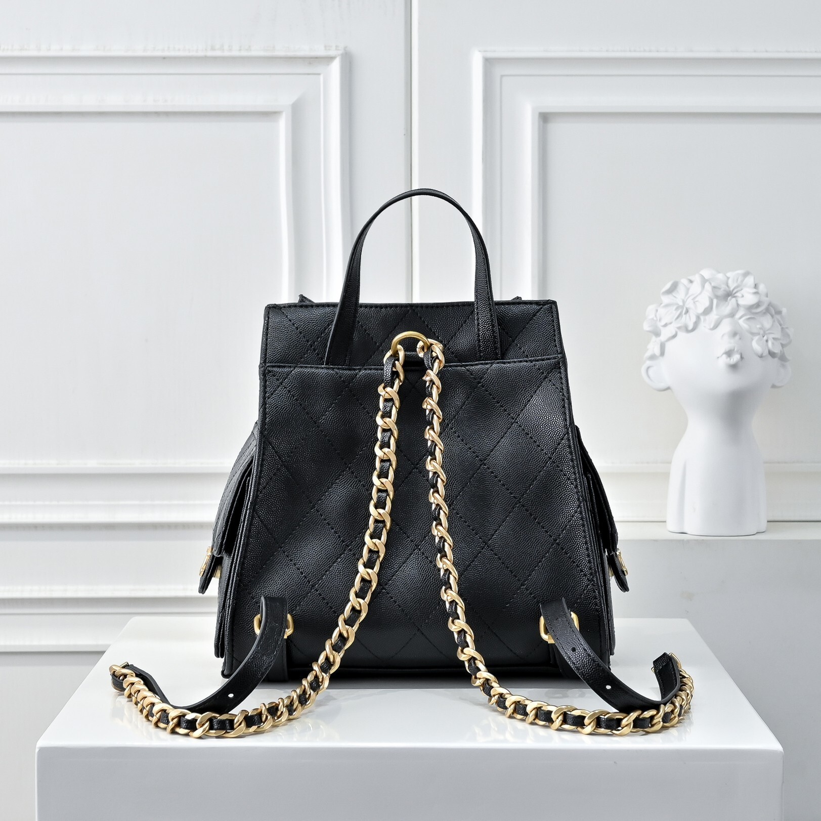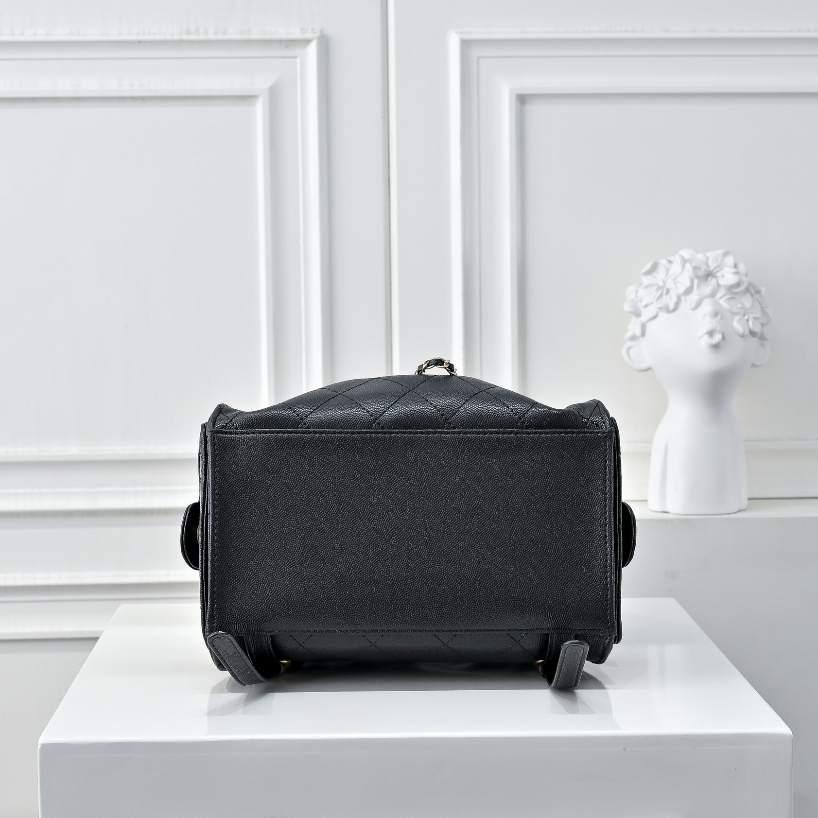 Chanel 25 Medium Size Backpack Black / 9.1 x 9.1 x 5.5 inches / Grain-effect / Gold Tone Metal / Elegant Style / Daily Bags