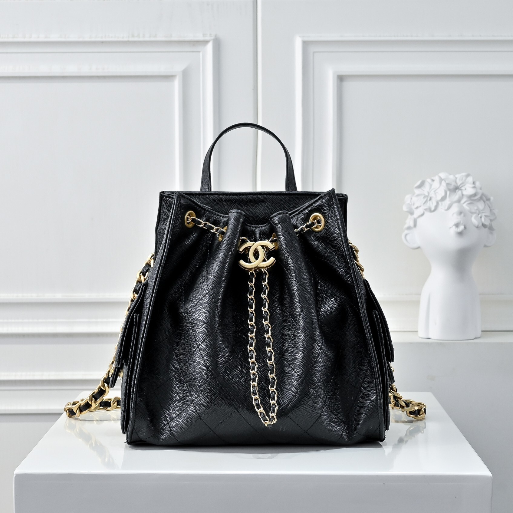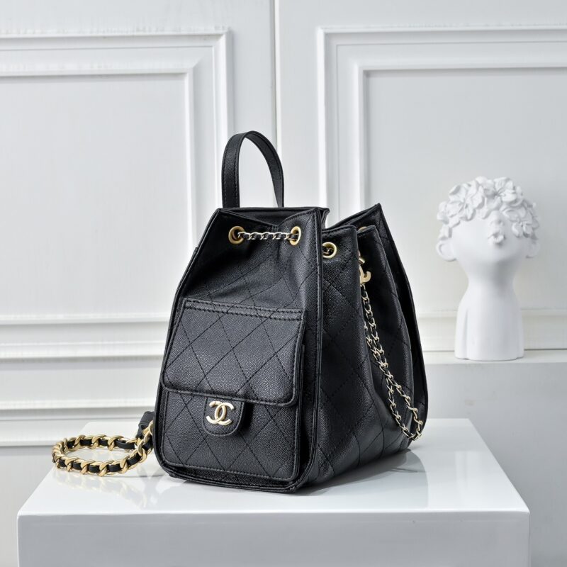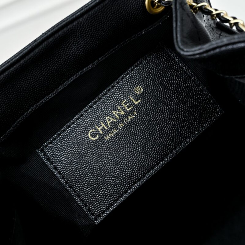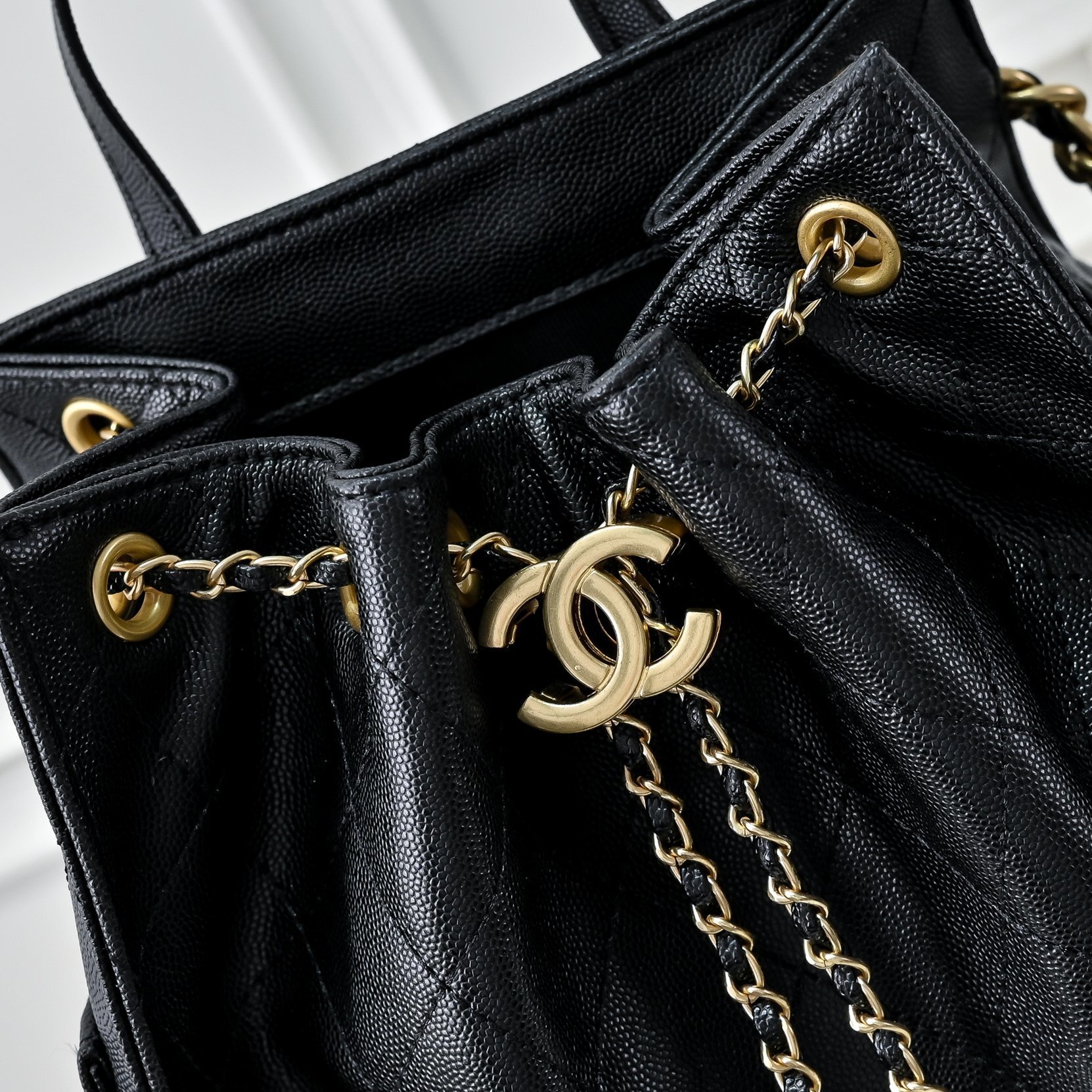 Chanel 25 Medium Size Backpack Black / 9.1 x 9.1 x 5.5 inches / Grain-effect / Gold Tone Metal / Elegant Style / Daily Bags
