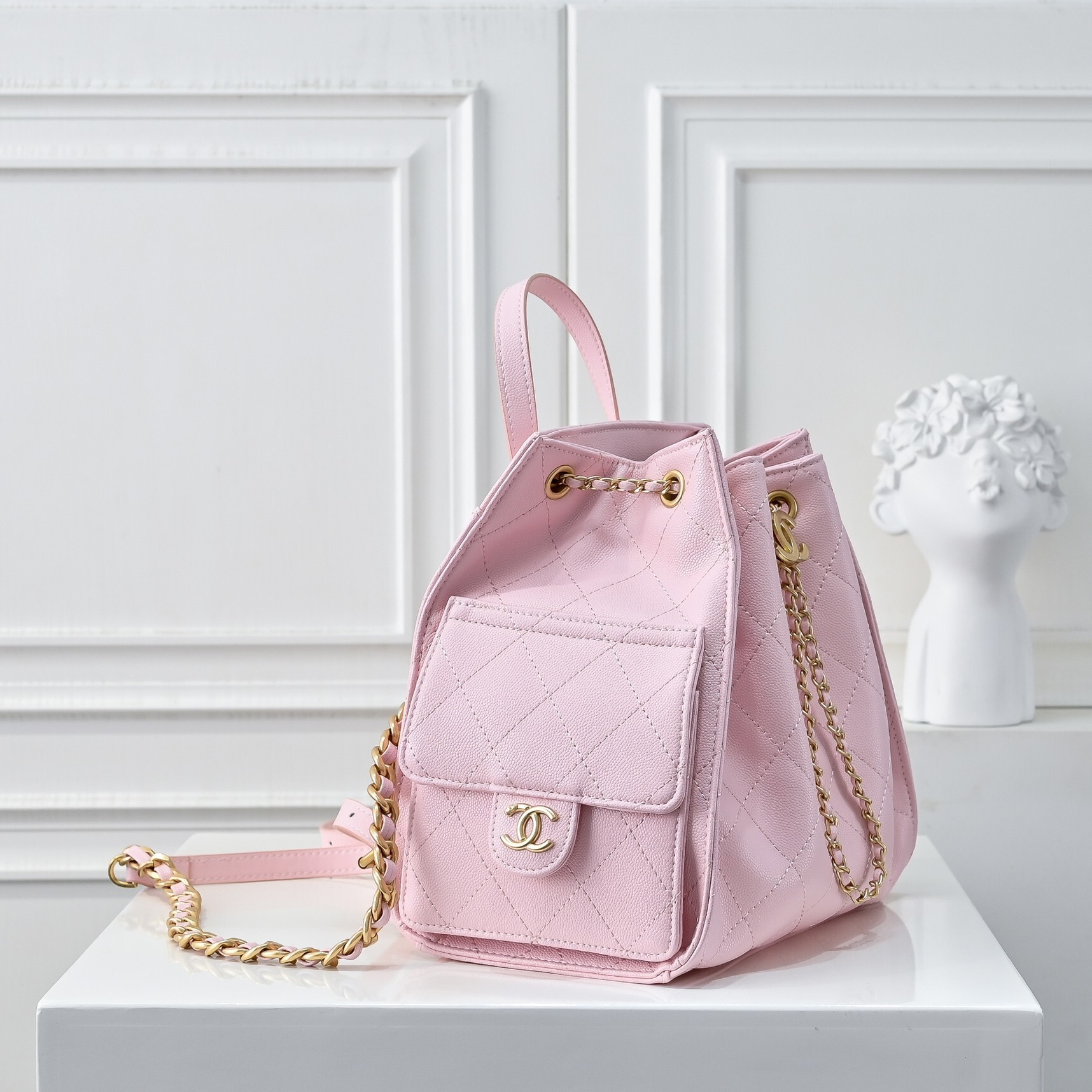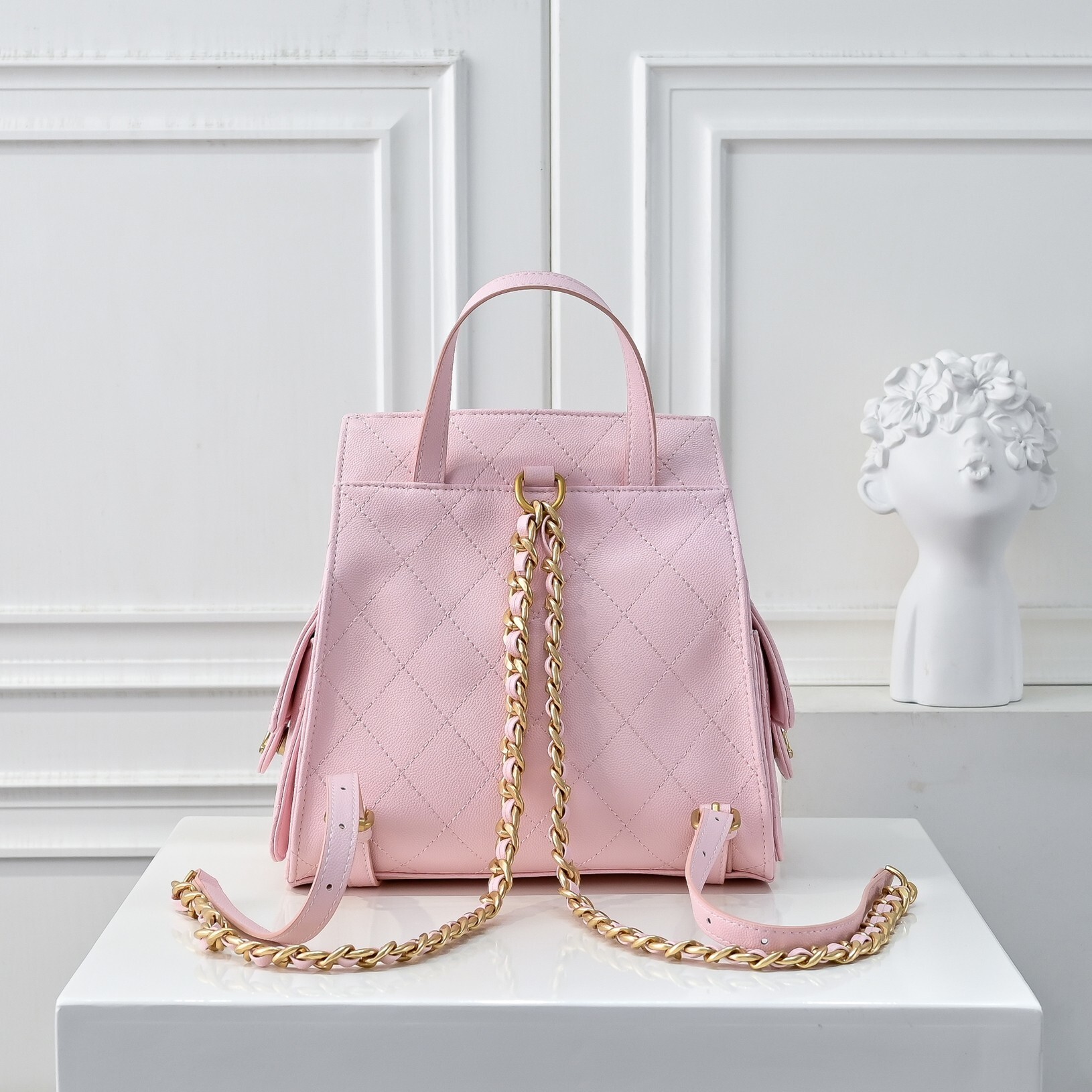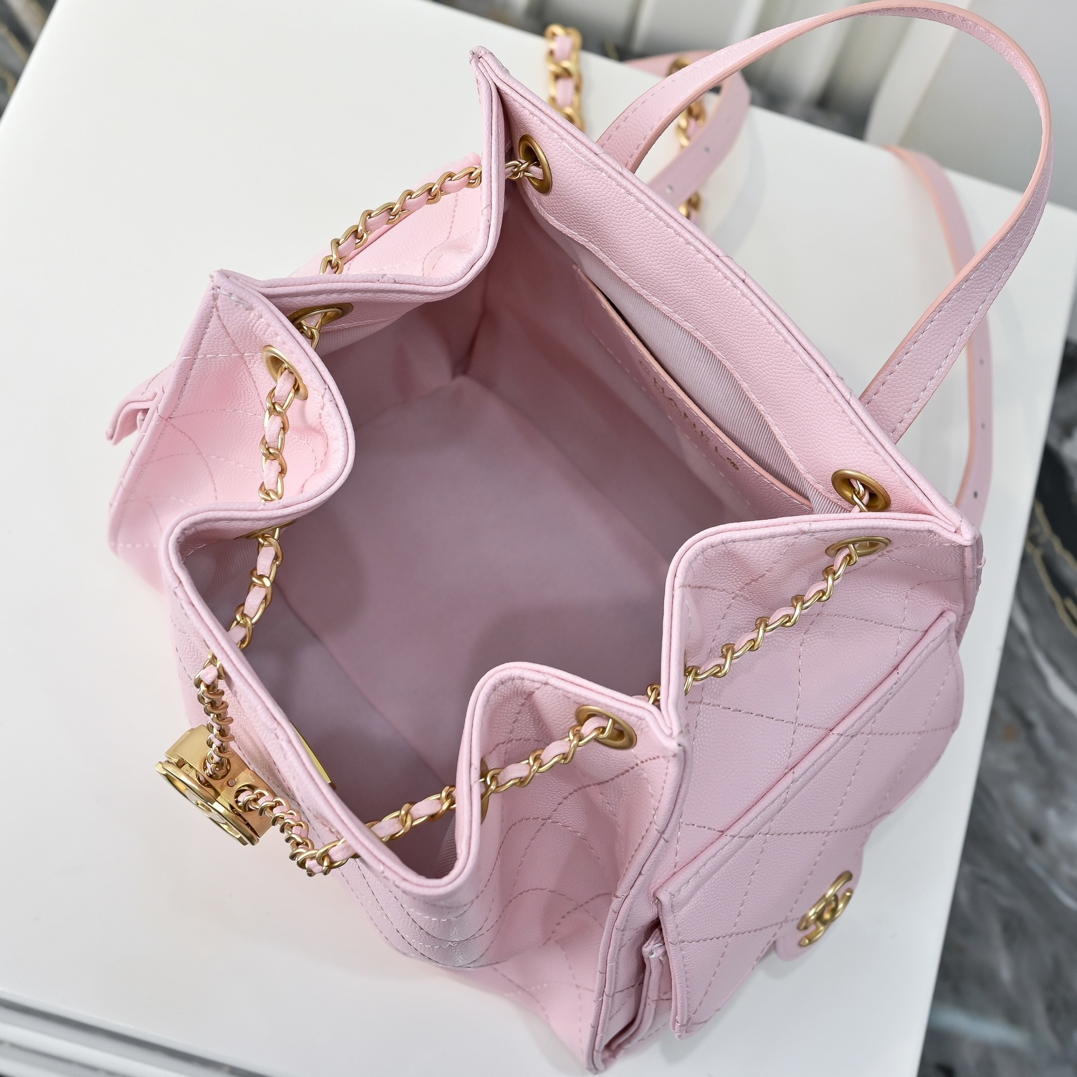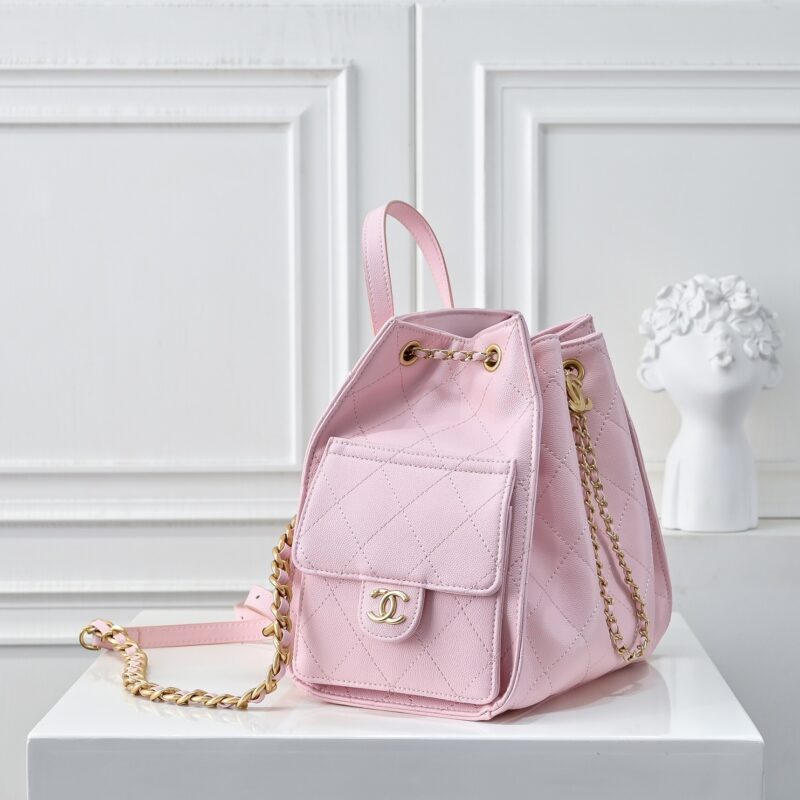 Chanel 25 Medium Size Backpack Pink / 9.1 x 9.1 x 5.5 inches / Grain-effect / Gold Tone Metal / Elegant Style / Daily Bags