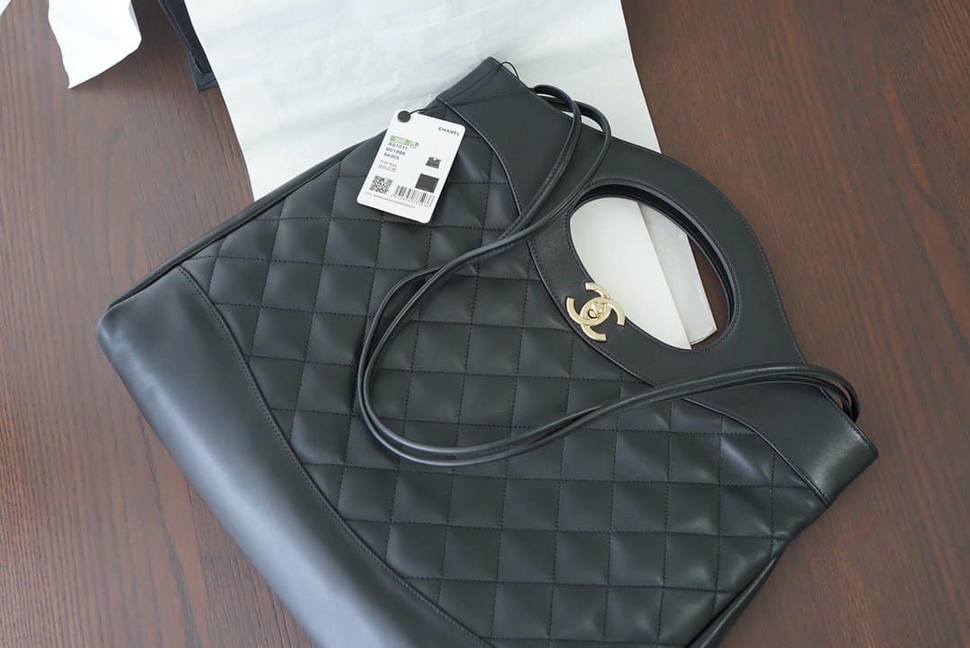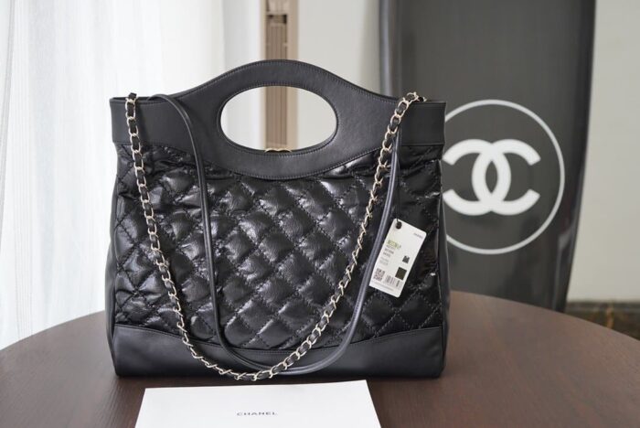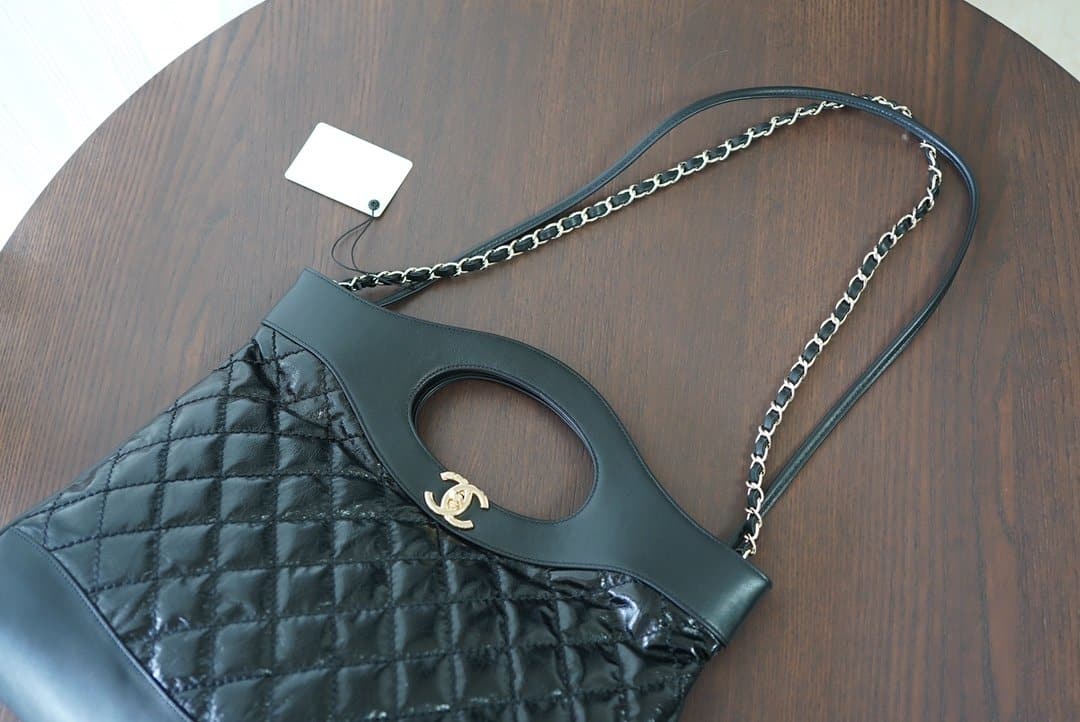Chanel 31 Large Shiny Leather Handle Bag Gold Hardware Black / 37cm / 14.5 inches