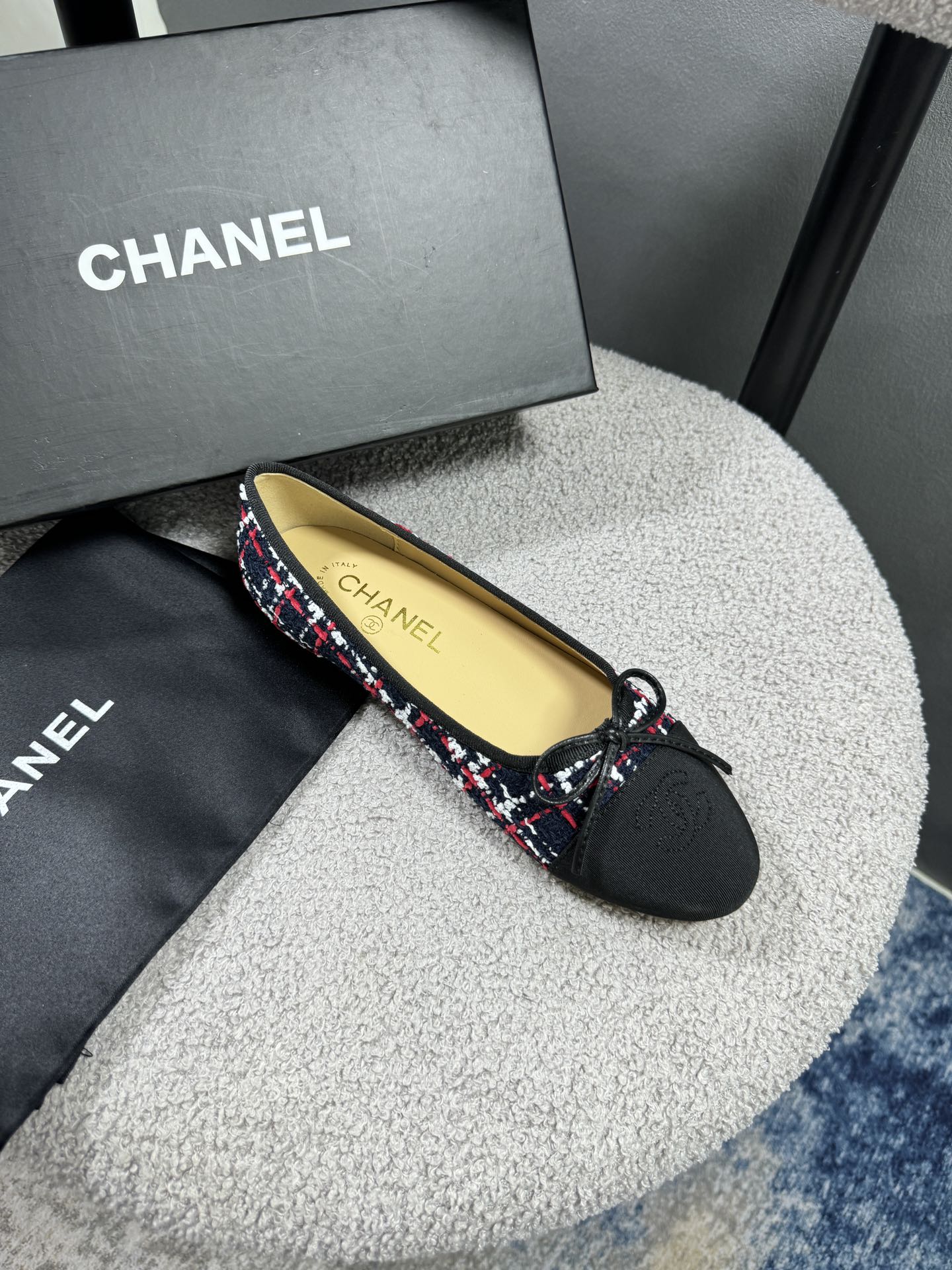 CHANEL BALLERINA FLAT SHOES TWEED IN BLACK
