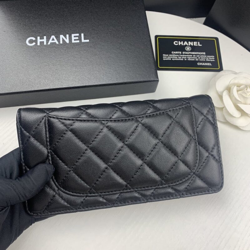 CHANEL QUILTED CLASSIC LONG FLAP WALLET BLACK 19CM