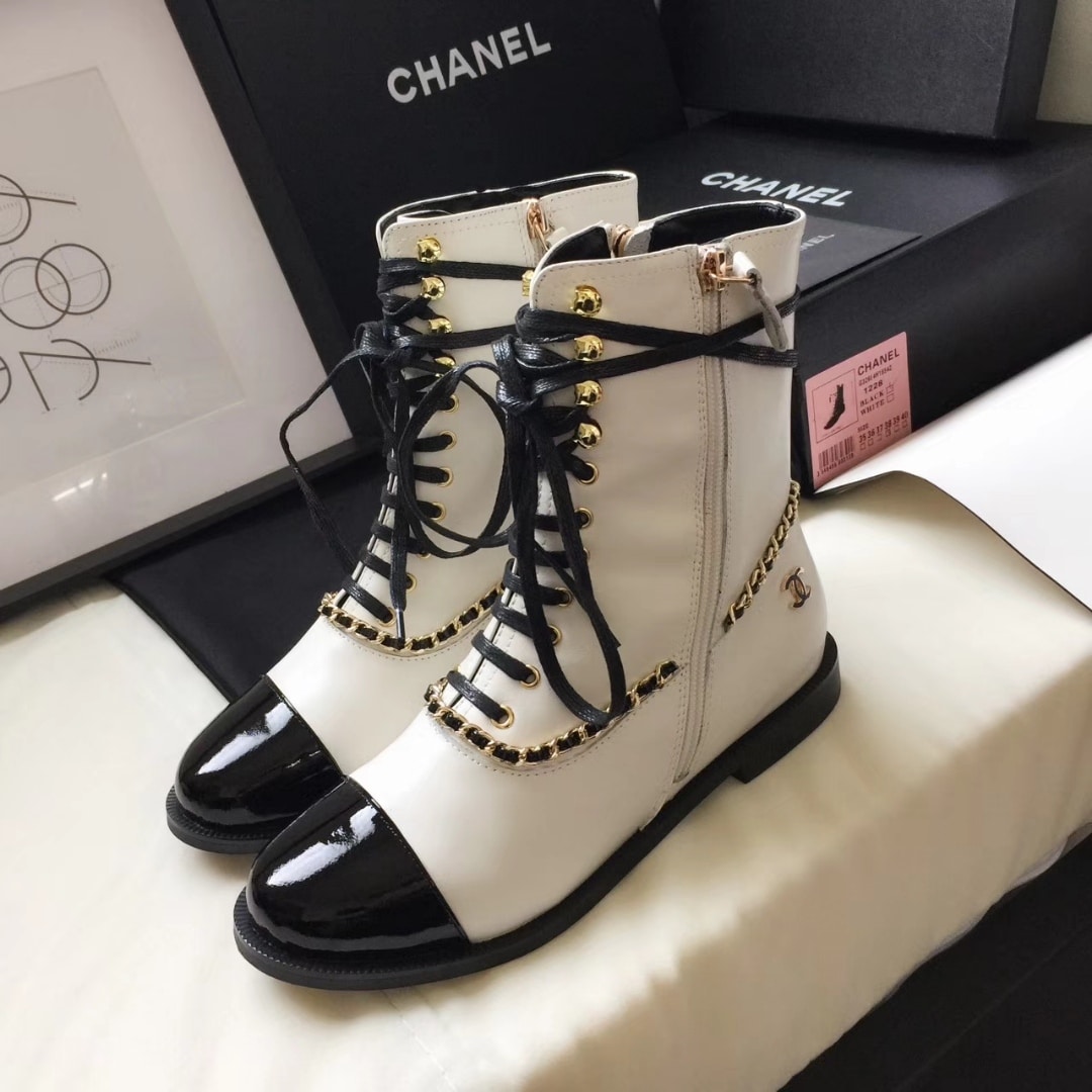 CHANEL BOTAS PARA MUJER WHITE AND BLACK