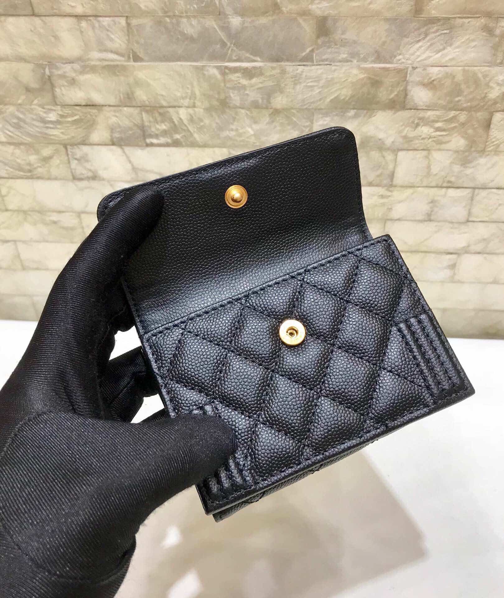 Chanel Boy Flap Card Holder Wallet Black Gold A80603 B01490 94305 / 10cm / 4.1 inches