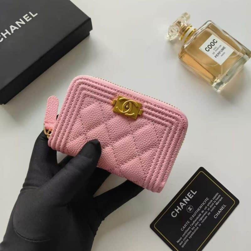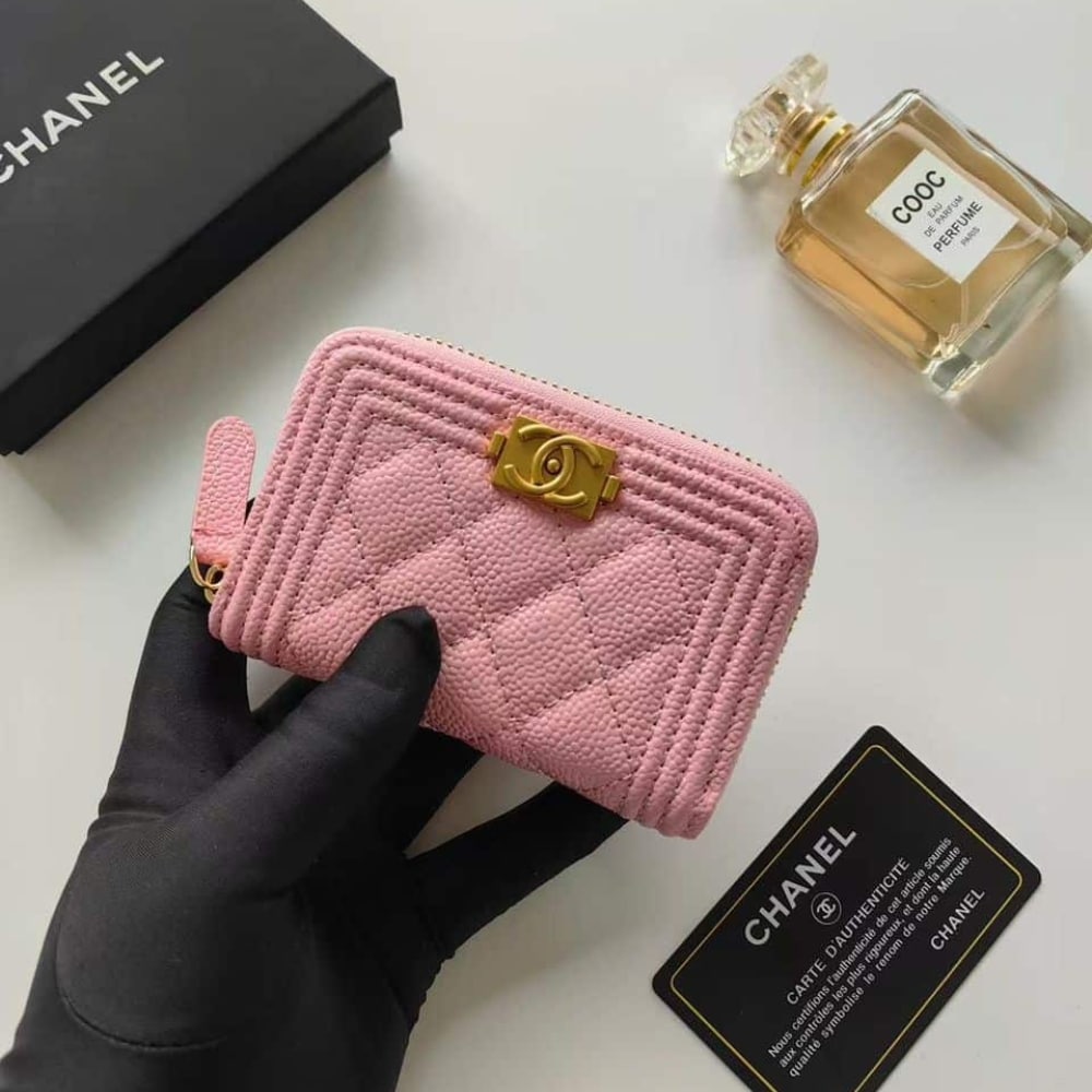 Chanel Boy Chanel Flap Card Holder Gold Pink A80603 B10211 NM370 / 11cm / 4.4 inches