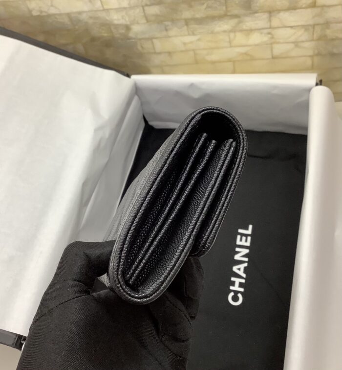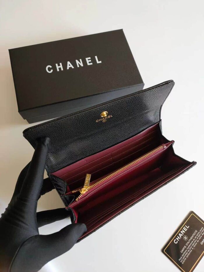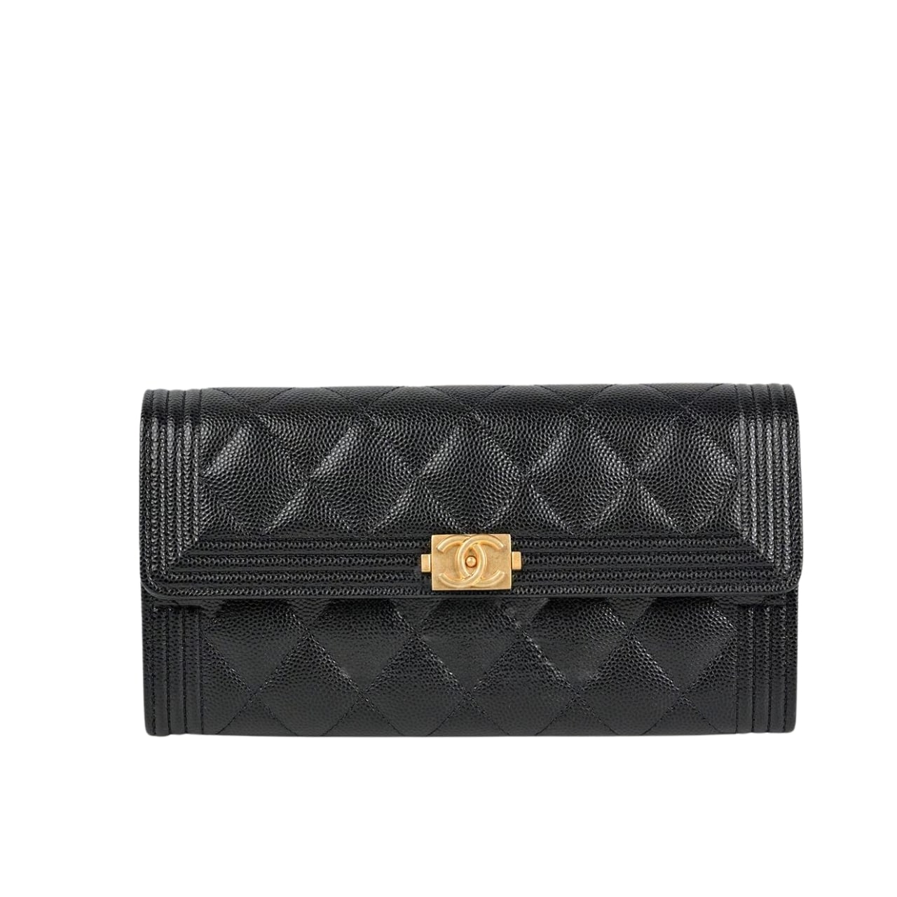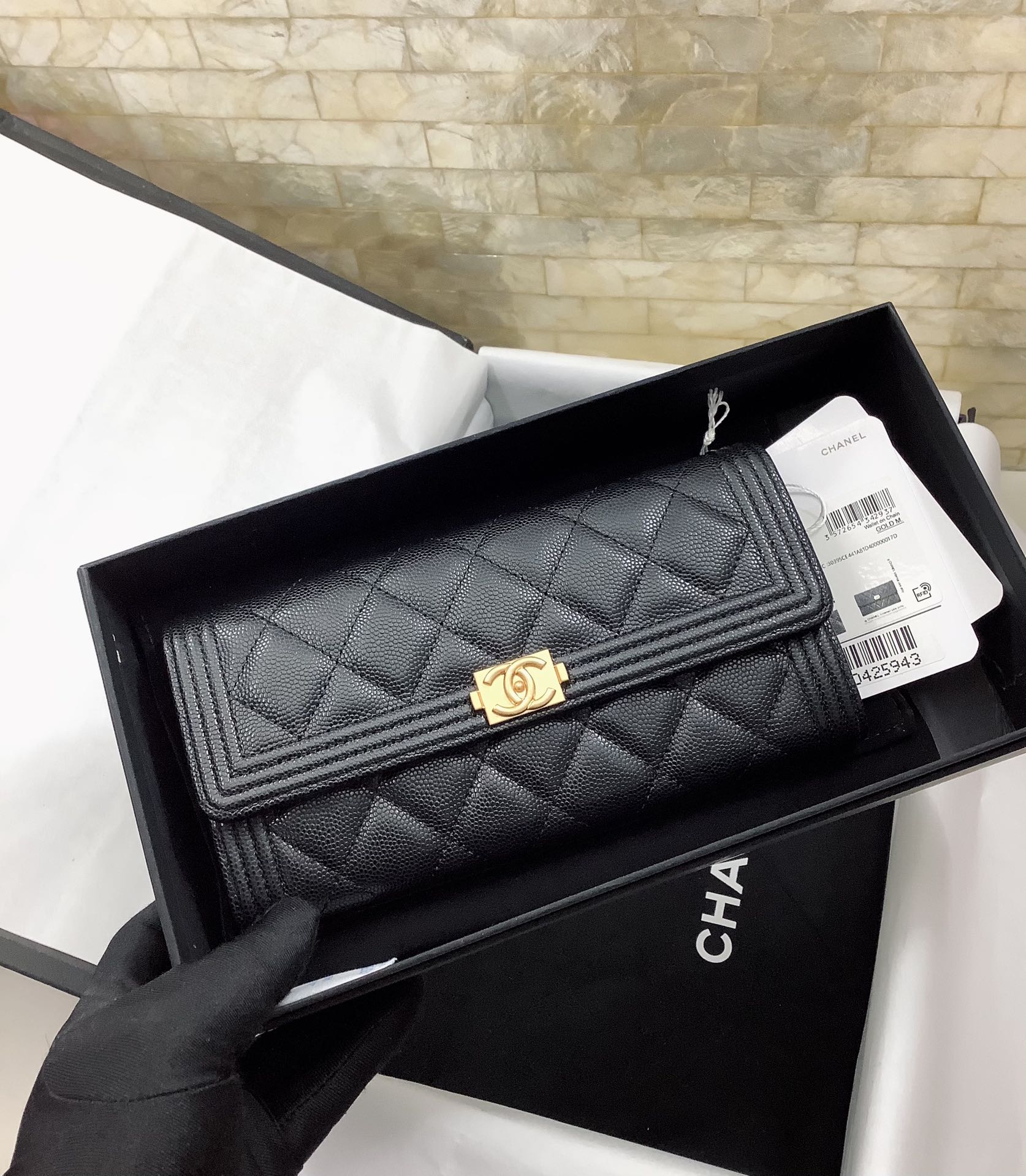 Chanel Boy Long Flap Wallet Black Gold A80286 Y07659 94305 / 19cm / 7.5 inches